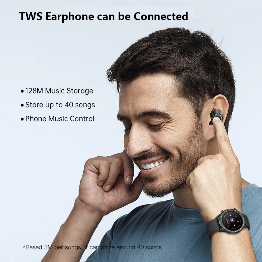 Благодаря встроенной памяти 128 М часы могут хранить до 40 песен. После подключения к телефону или наушнику tws вы можете управлять музыкальным проигрывателем, воспроизводить или останавливать, регулировать громкость, предыдущую/следующую песню на часах. Погрузитесь в музыку во время тренировок.