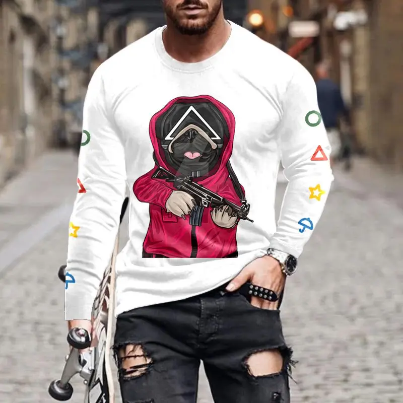 Европейская и американская популярная мужская Спортивная футболка для отдыха с 3D Цифровым принтом уличная трендовая футболка с 3D принтом и длинным рукавом