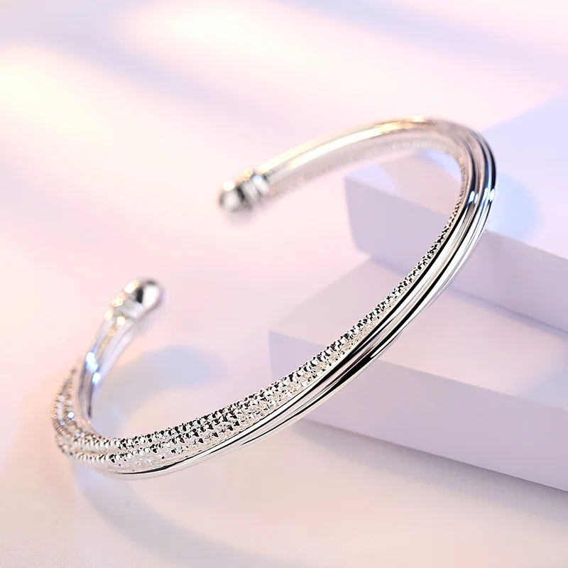 Новинка, женские модели, Серебристый браслет с витой линией, модный простой браслет с открывающимся ртом и изменяемым размером в виде автомобильной цветочной линии, подарок