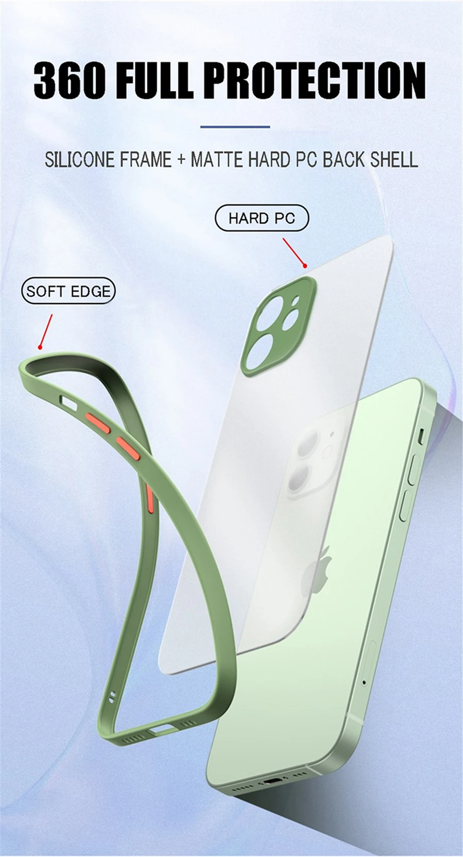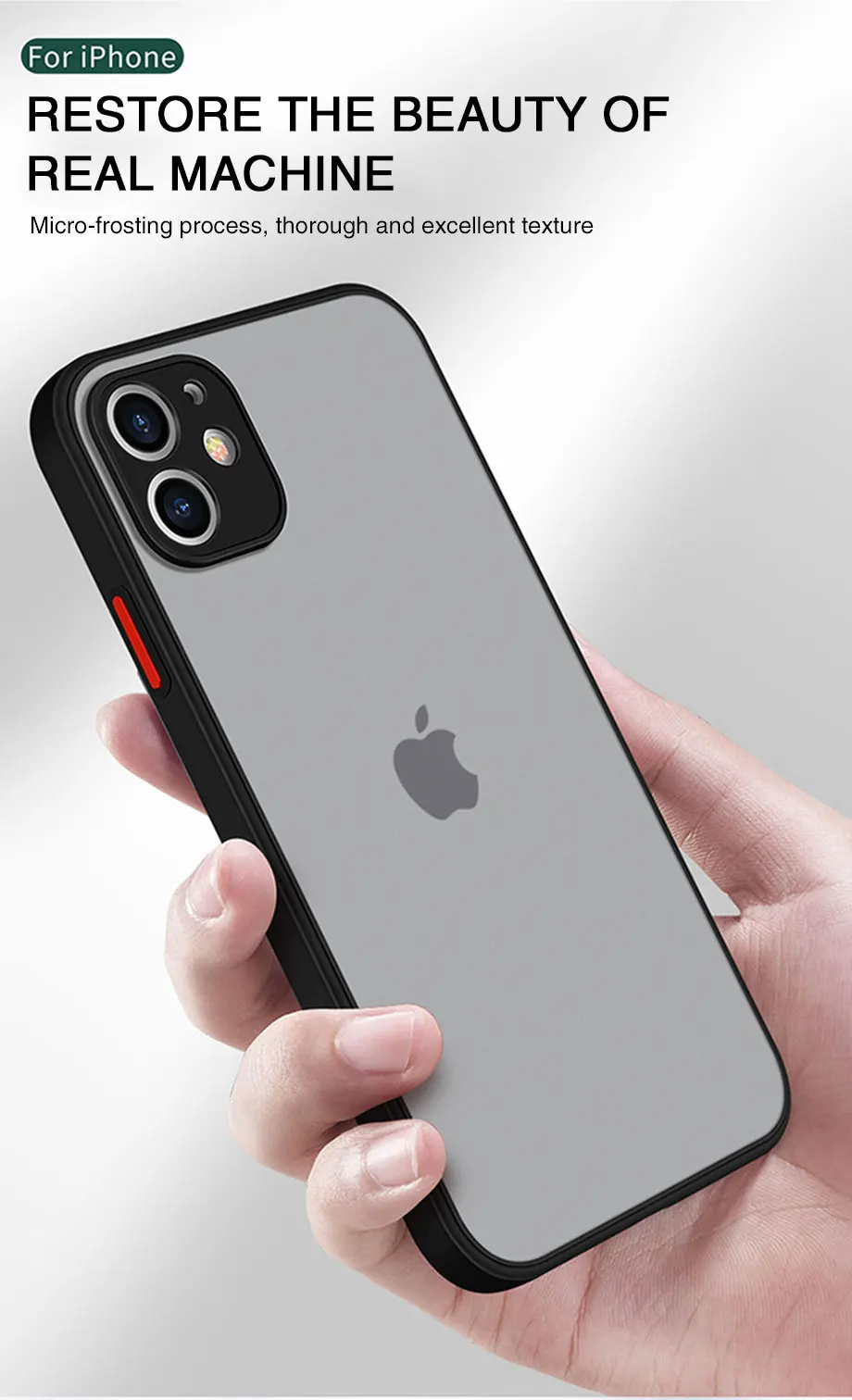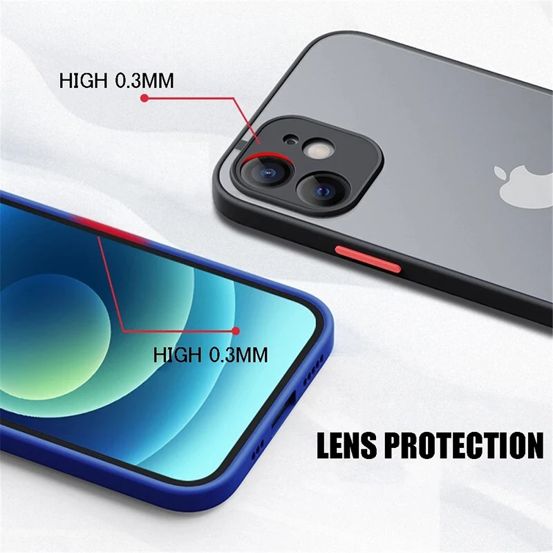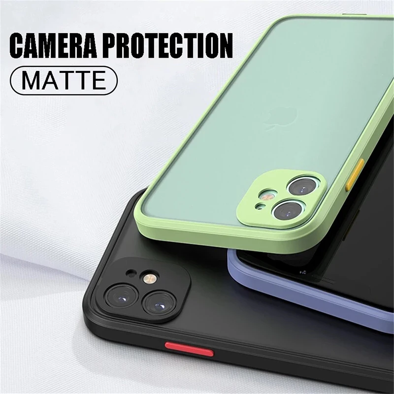 Ударопрочный чехол для объектива камеры для iPhone 13 11 12 Pro Max Mini 6 7 8 Plus XR X XS MAX SE 2020, Прозрачный матовый чехол, задняя крышка