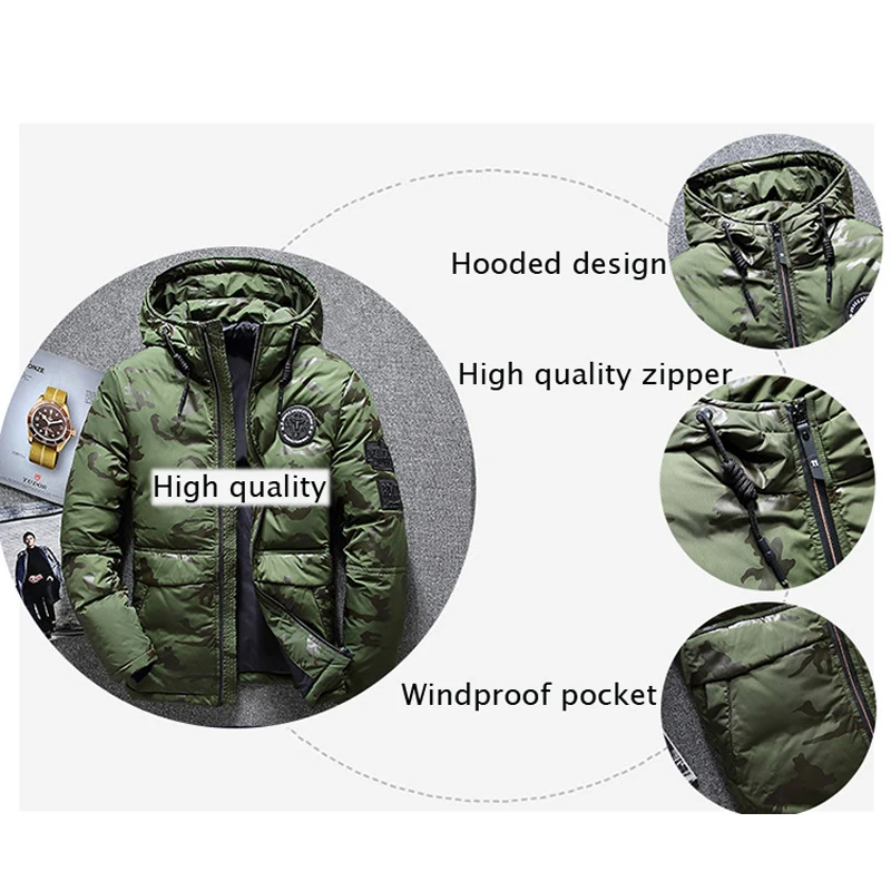 Зимняя теплая куртка на белом утином пуху, мужская верхняя одежда, ...