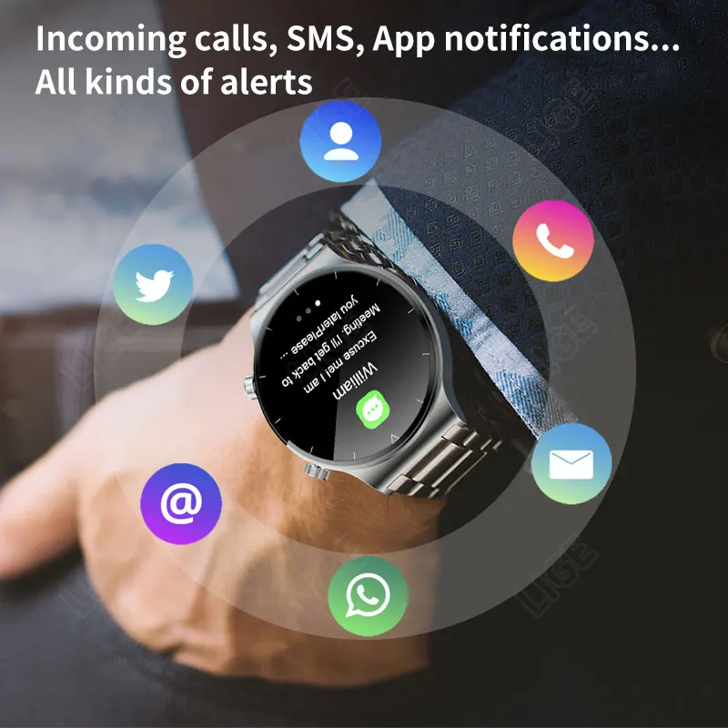 Смарт-часы LIGE мужскиеженские с сенсорным экраном, IP68 Пользовательский набор Сообщение Push Открытый браслет