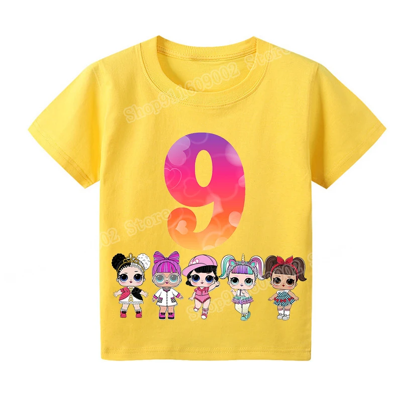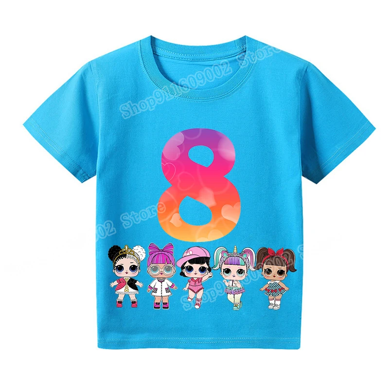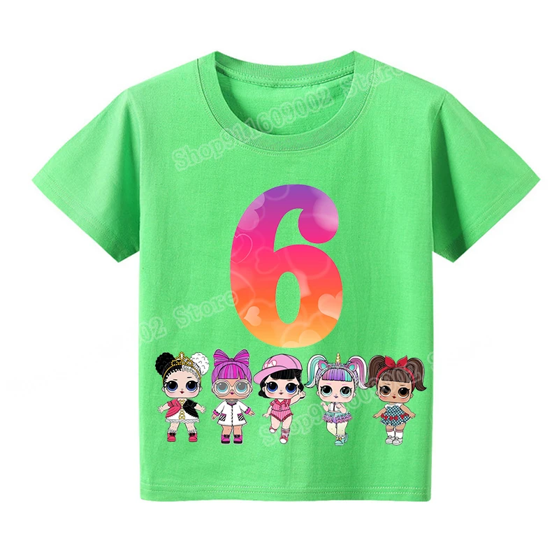 Футболка для девочек LOL SURPRISE, футболки с графическим принтом OMG Doll, детские футболки с надписью на день рождения, от 1 до 9 топов, детская Эстетическая одежда, подарки