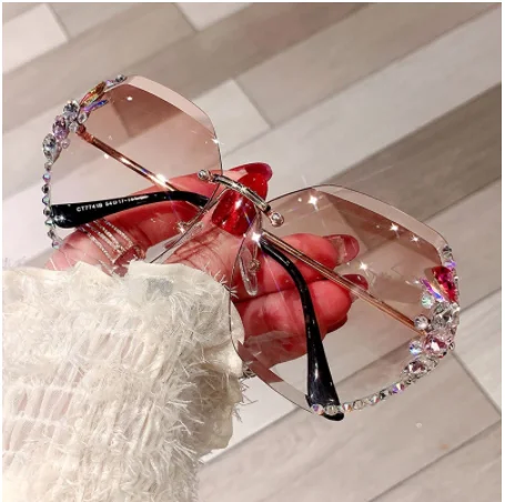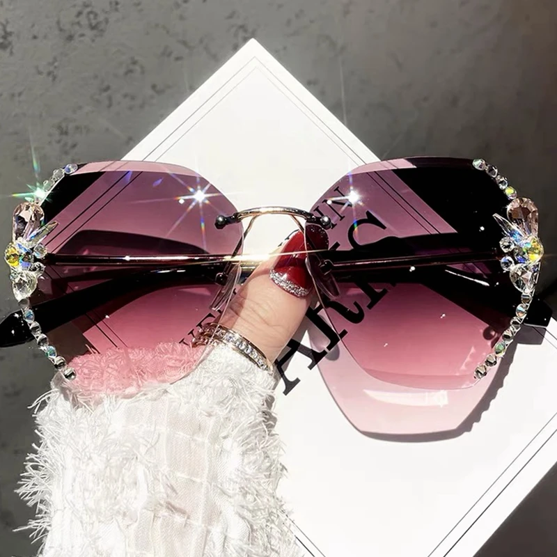 Модные солнцезащитные очки без оправы UV400, женские очки с градиентными линзами в стиле ретро, Винтажные Солнцезащитные очки Стразы, очки