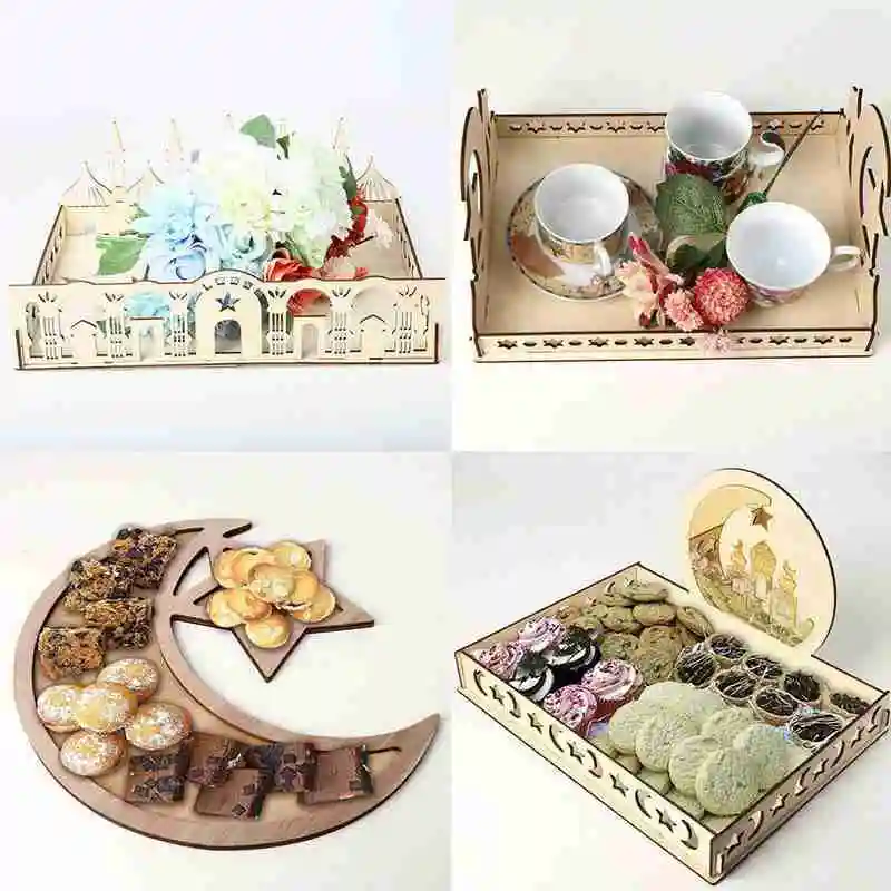 Деревянный десертный поднос Eid Mubarak, домашний деревянный поднос...
