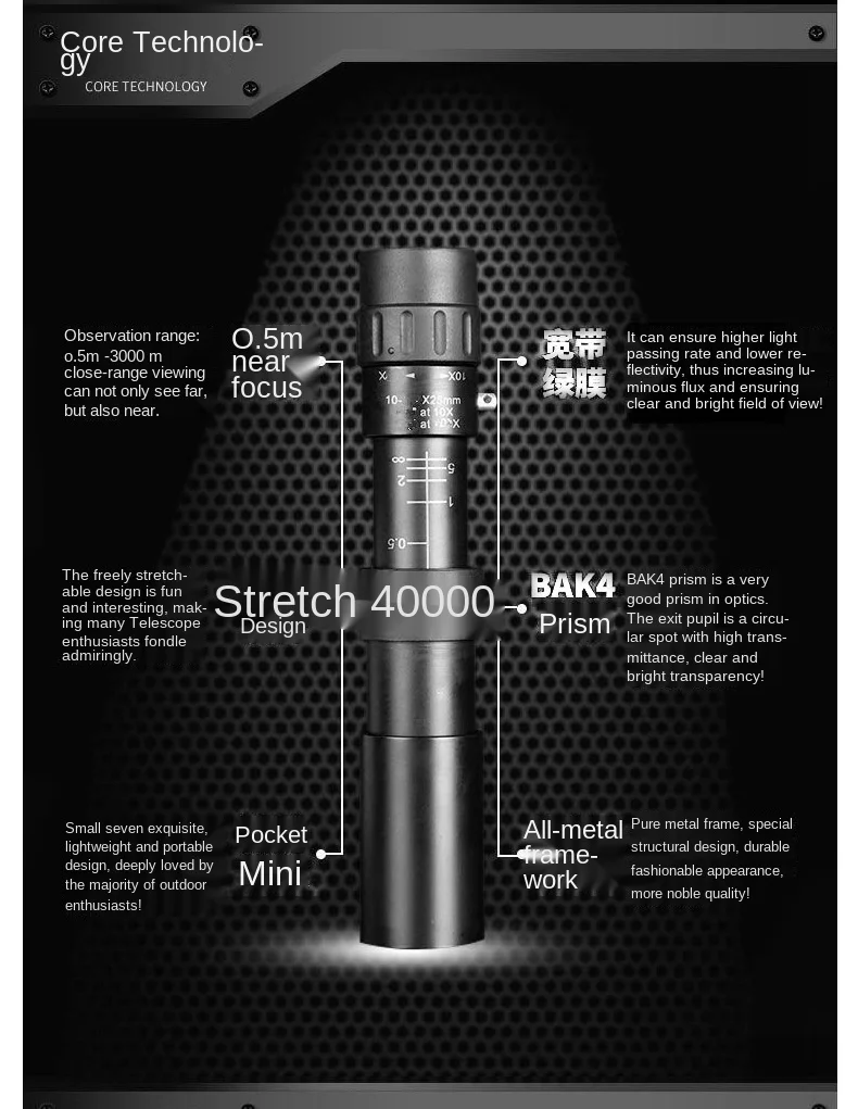 Профессиональный монокулярный телескоп 10-300x40, мощный портативный бинокль с зумом, BAK4-Prism, водонепроницаемый, для кемпинга