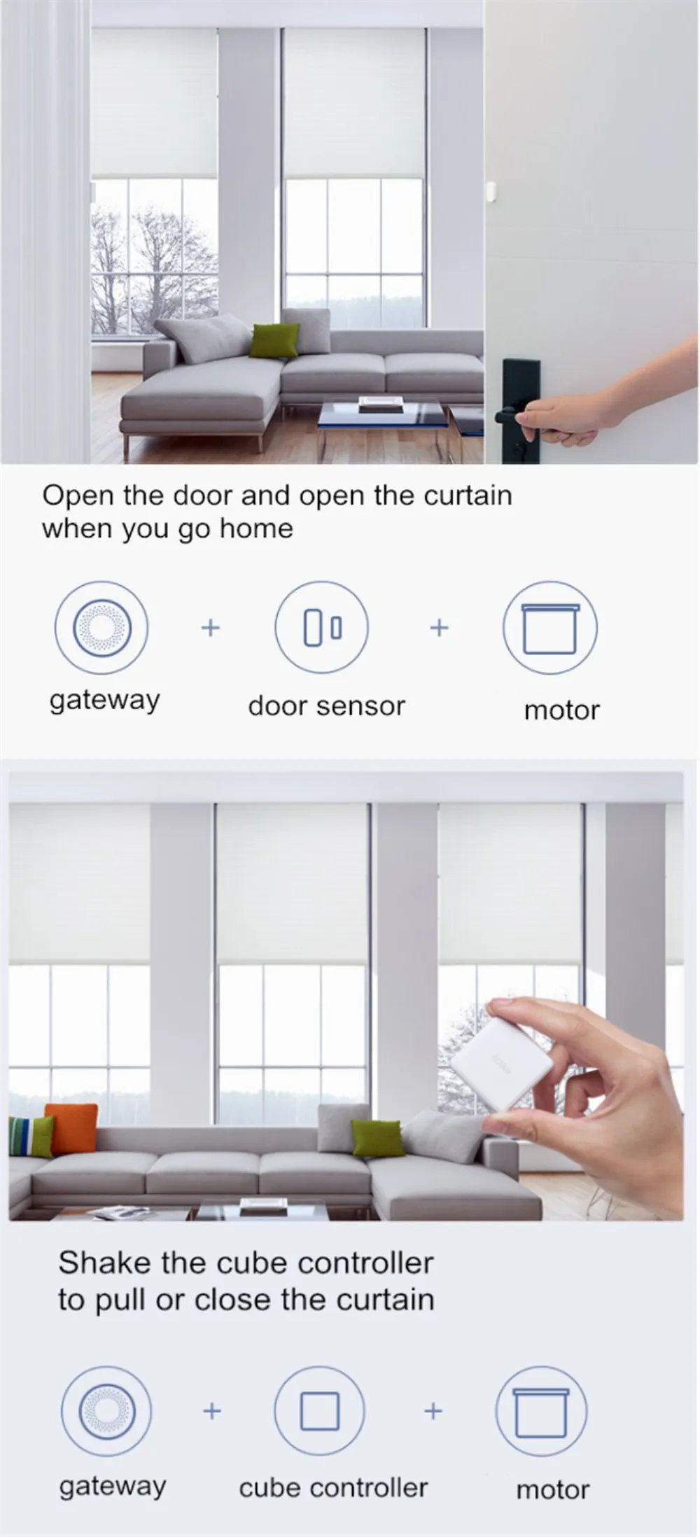 Умный трубчатый мотор Aqara-это электрический Интеллектуальный штор, который может автоматизировать шторы, такие как обычные рольставни и штора Shangri-La.Встроенный модуль беспроводной связи Zigbee с шлюзом для дистанционного управления, переключателем времени и многофункциональным интеллектуальным соединением