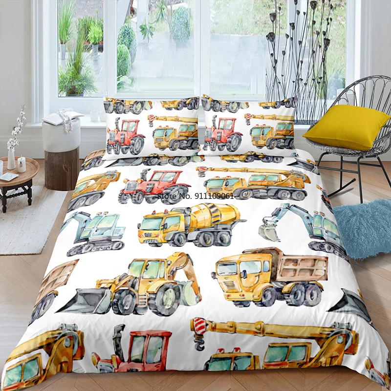 Автомобильный комплект постельного белья для детей, декор для спальни, королевский комплект пододеяльников, пододеяльник для мальчиков, детский пододеяльник, постельное белье для дома с экскаватором и грузовиком