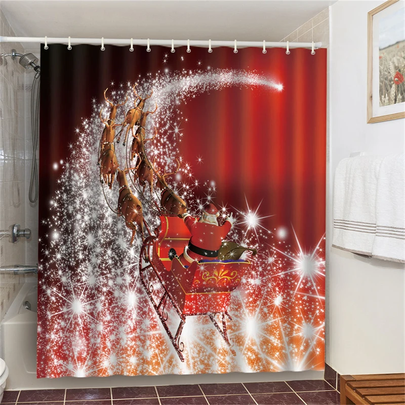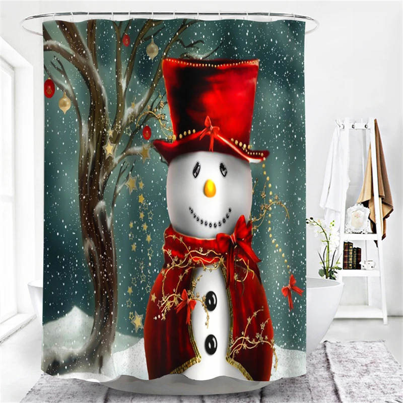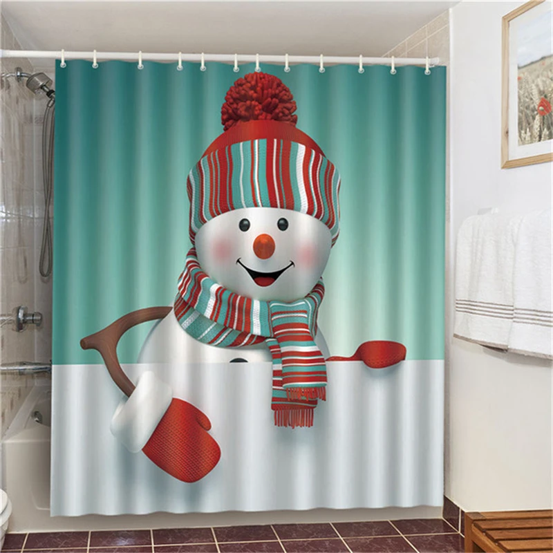 Рождественская занавеска для душа, водонепроницаемая ткань, милый Санта-Клаус, Рождественская занавеска для ванной, снеговик, лось, домашний декор, душевые занавески
