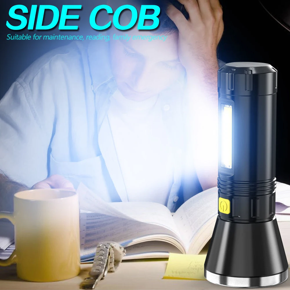 Мощный водонепроницаемый светодиодный фонарик дальнего действия с зарядкой от USB и встроенным аккумулятором 18650
