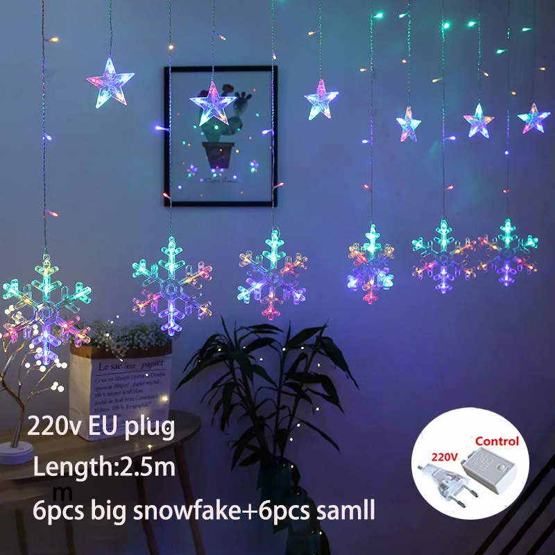Рождественская светодиодная гирлянда в виде звезд, 220 В, ЕС110 В, США, Сказочная Гирлянда-занавеска, гирлянда для вечеринки, дома, украшение на Новый год и свадьбу