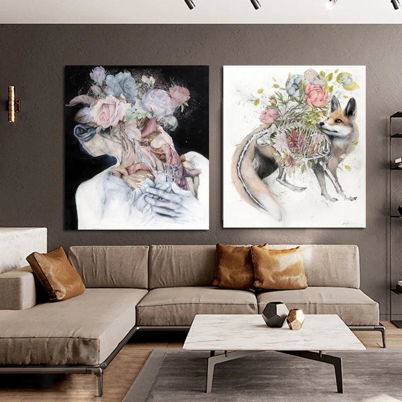 WANGART, анатомия, Настенная картина, ваш голос между нервами и шипами, холст, плакат, печать, Современный домашний декор