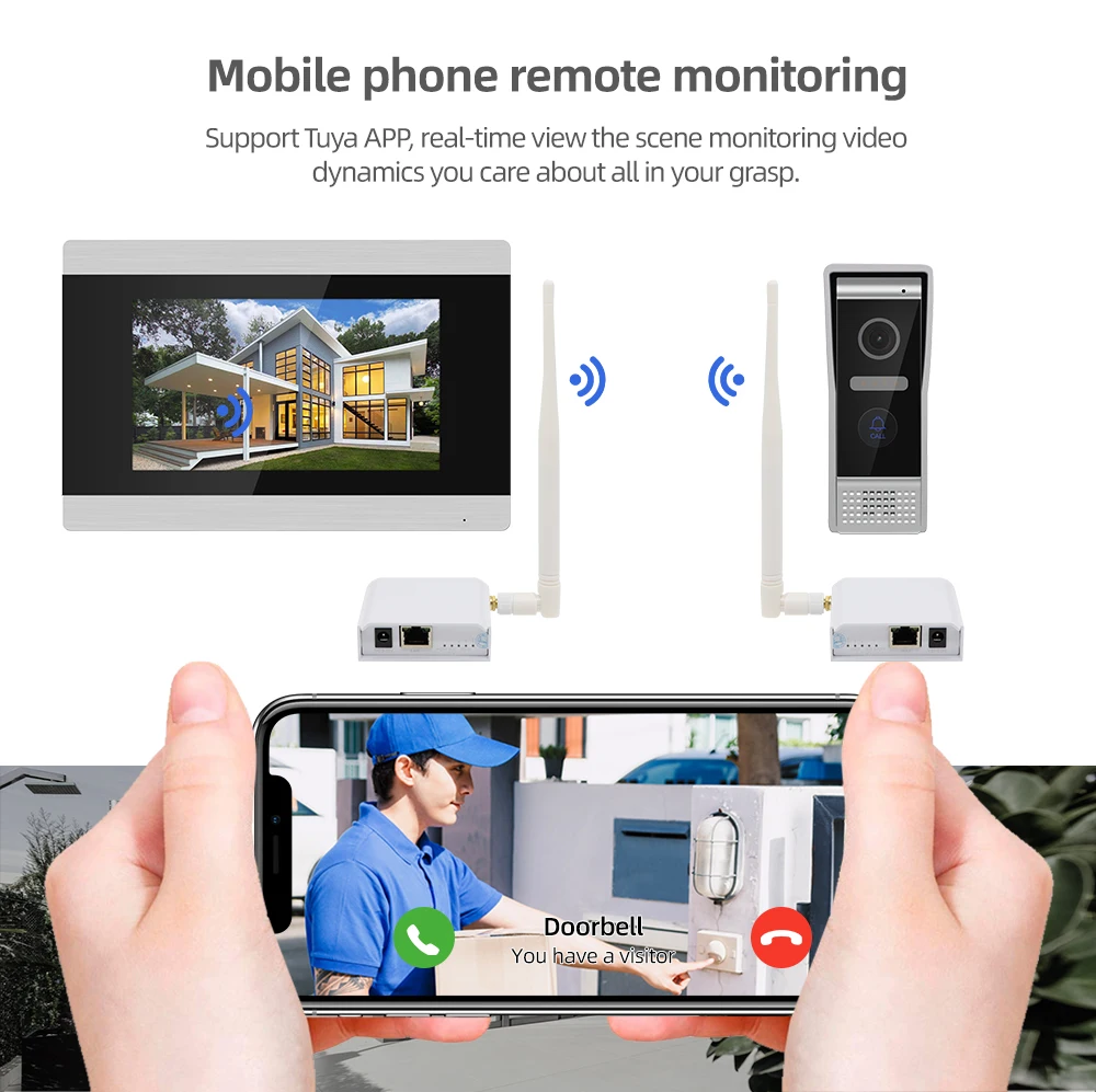 Jeatone Tuya умный 7-дюймовый Wi-Fi IP видеодомофон телефон дверной Звонок камера система с беспроводным WIFI мостом Box87203BLACK