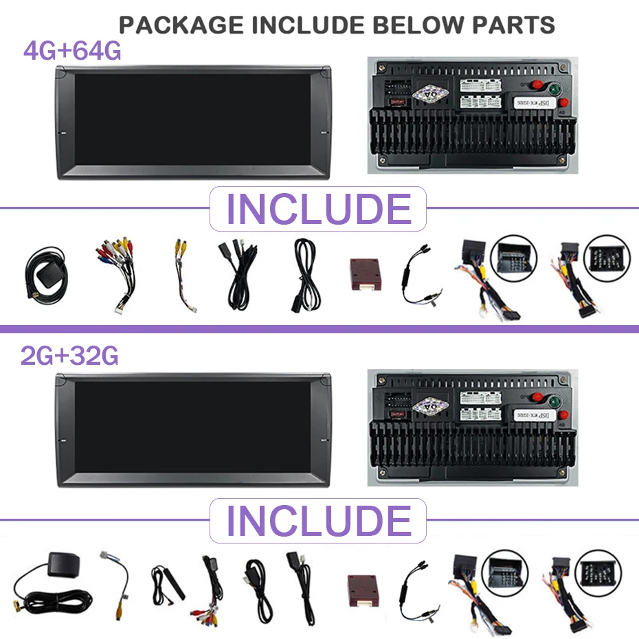 Применимые модели и годы:Для BMW 5 серия E39 1996-2001 со старым 17-контактный разъемДля BMW 5 серия E39 2002-2003 с новыми 40-контактный разъемДля BMW X5 E53 2000-2001 со старым 17-контактный разъемДля BMW X5 E53 2002-2007 с новыми 40-контактный разъемДля BMW X5 1999-2006 E53Для BMW M5:1996-2003 (новый 40 Pin или старый 17 Pin)Хотя мы приложили все усилия, чтобы убедиться, что данное устройство будет совместимо с указанными транспортными средствами, пожалуйста, проверьте год, размеры и форму центральной консоли ваших транспортных средств перед покупкой.1. Подарок = инструменты + микрофон + копия файлов карты в GPS внутри (вы можете использовать gps напрямую, не включая карту карты).