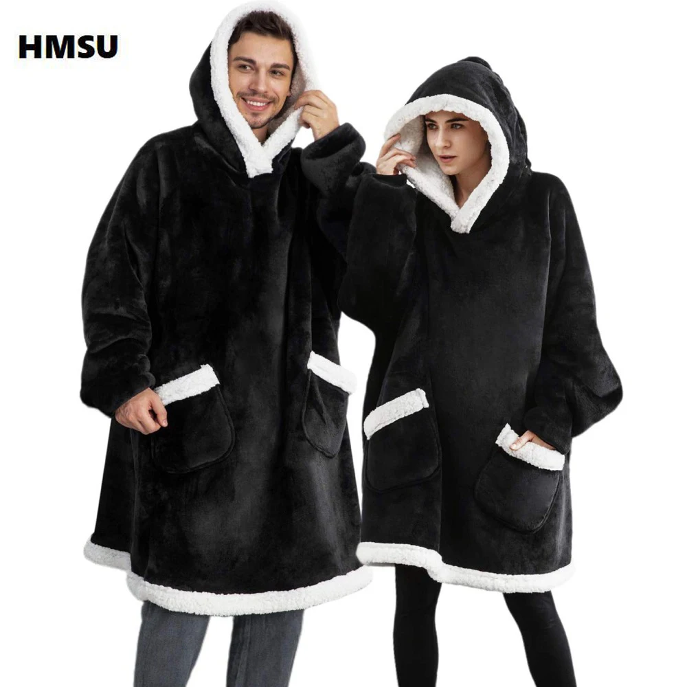 Зимнее теплое одеяло HMSU для ТВ, пригодное для носки, дикая Домашняя одежда с длинным рукавом, удобное одеяло для дивана, плюшевая толстовка, Флисовое одеяло с капюшоном, одеяло, верхняя одежда
