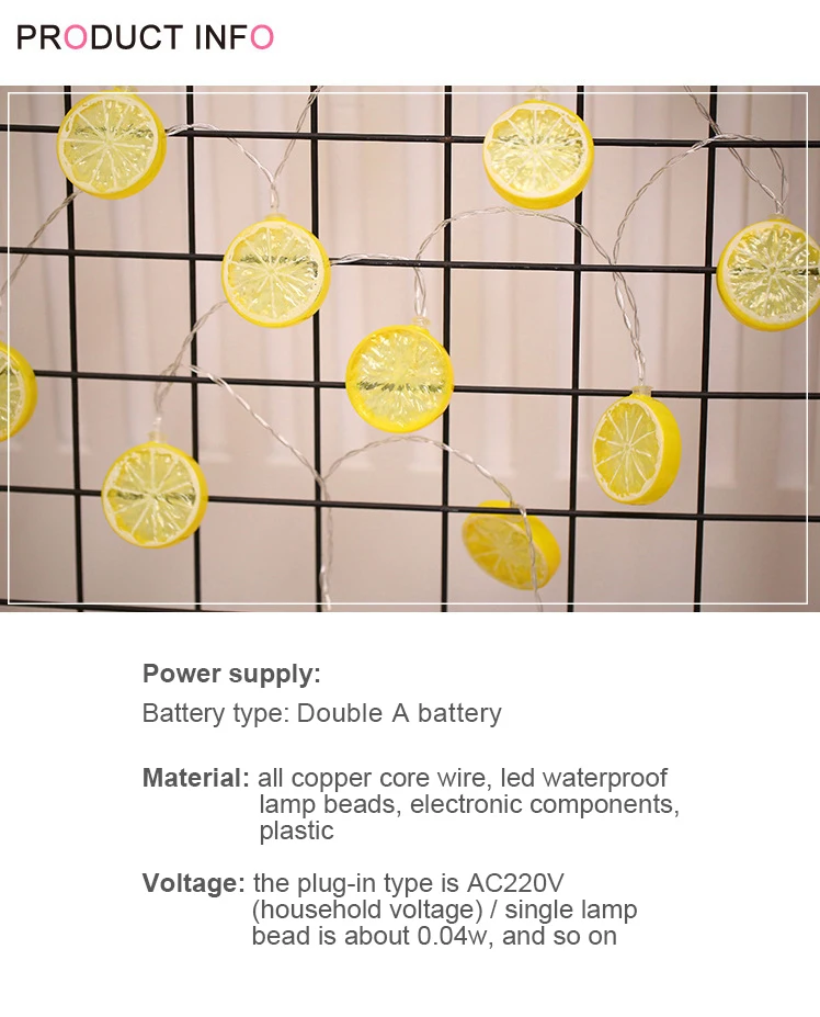 Рождественское украшение в виде лимона светильник ная гирлянда в форме фруктов, праздничное украшение на день рождения, сказочное освещение для свадьбы, Нового года, 2 м