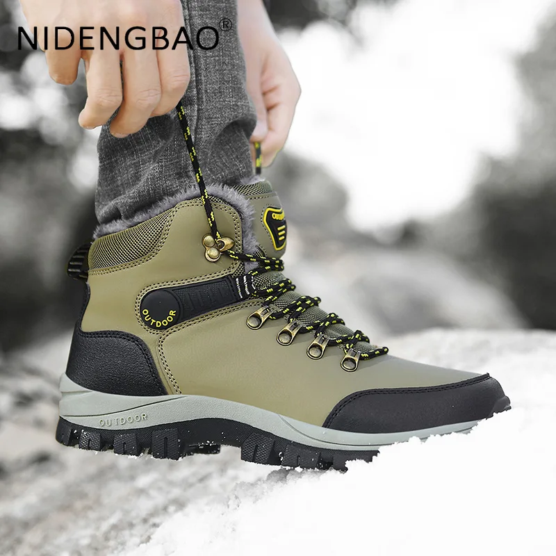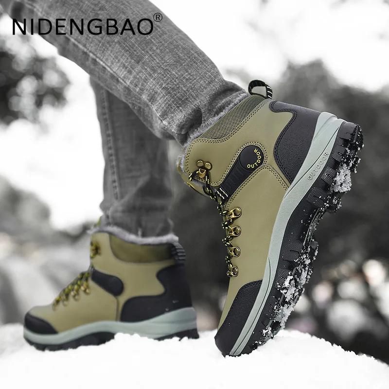 Мужские зимние походные ботинки размера плюс 46, 2021, водонепроницаемые теплые плюшевые зимние ботинки, уличная спортивная обувь для треккинга, мужские повседневные кроссовки