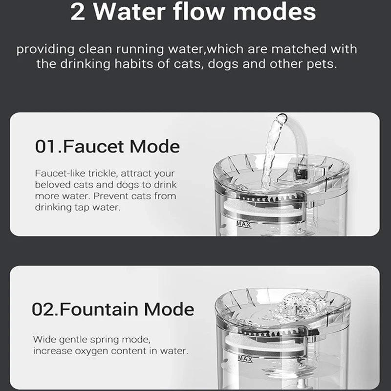 2 режима потока воды (режим крана/режим фонтана), обеспечивая чистую проточную воду, сделайте ваших питомцев счастливее и здоровее.