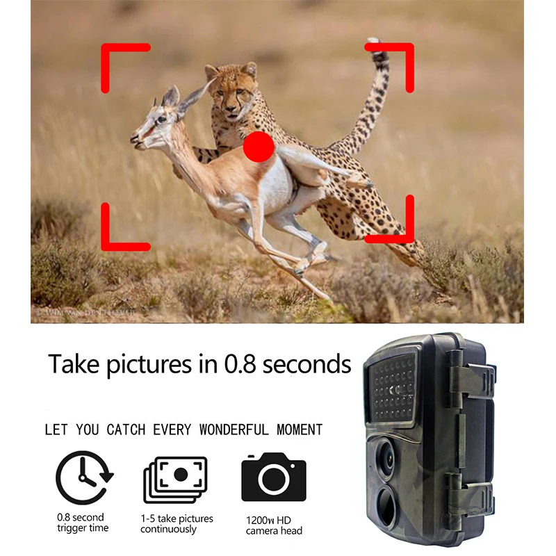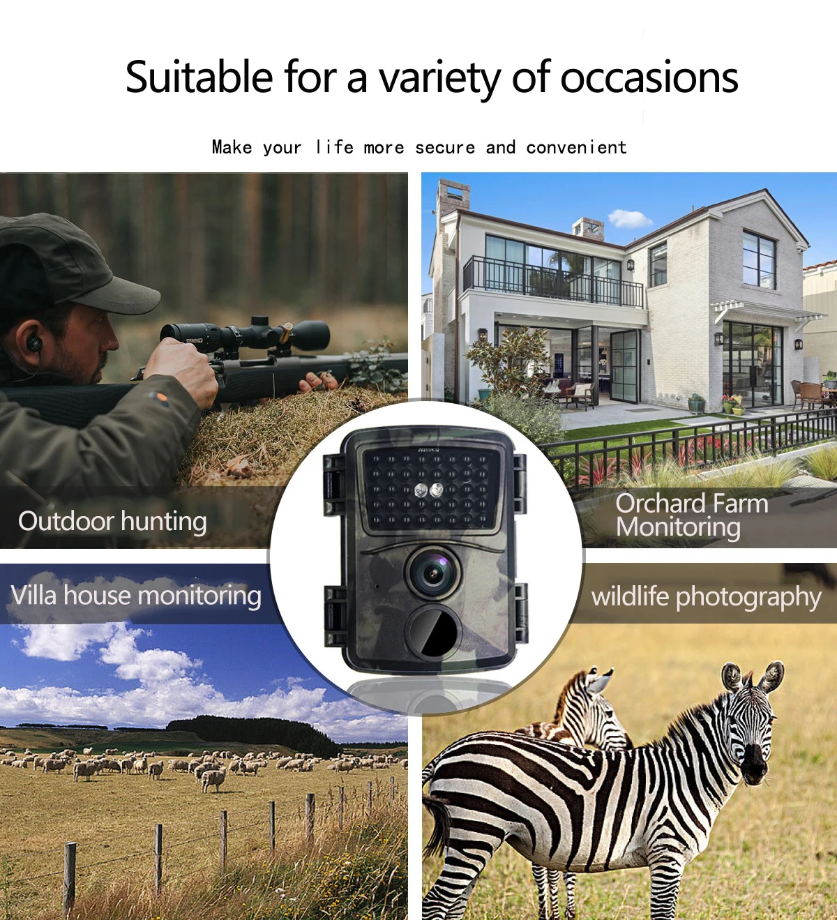 -Компактный и портативный: этот трек и игровая камера поставляется с высокочувствительным PIR датчиком. Он может быть активирован в определенной области интересов, обнаруживая любое движение объектов или животных. Эта камера имеет компактный размер и легкий вес, она не только широко используется для игр на открытом воздухе и наблюдения за дикой природой, но и популярна в домашней и офисной безопасности.