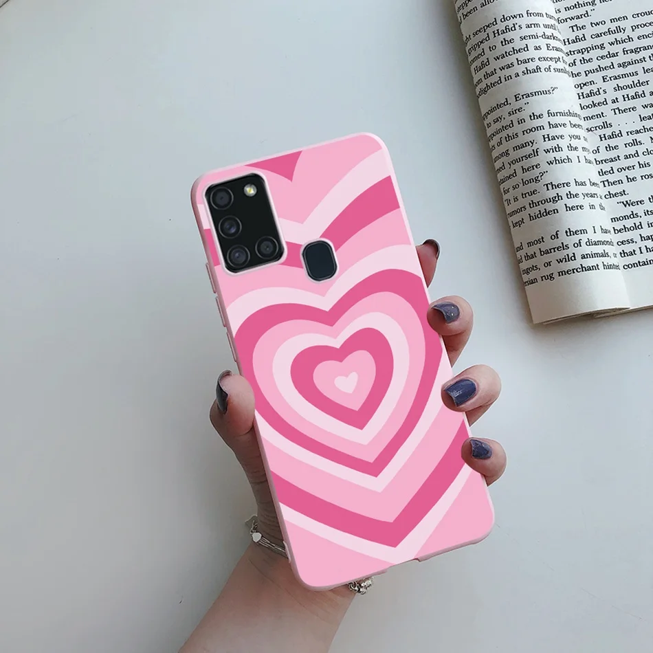 Чехол для Samsung Galaxy A21S, 6,5 дюйма, мультяшный чехол с сердечками, задняя крышка, роскошные защитные силиконовые чехлы для Samsung A 21 a21 S, чехол для телефона