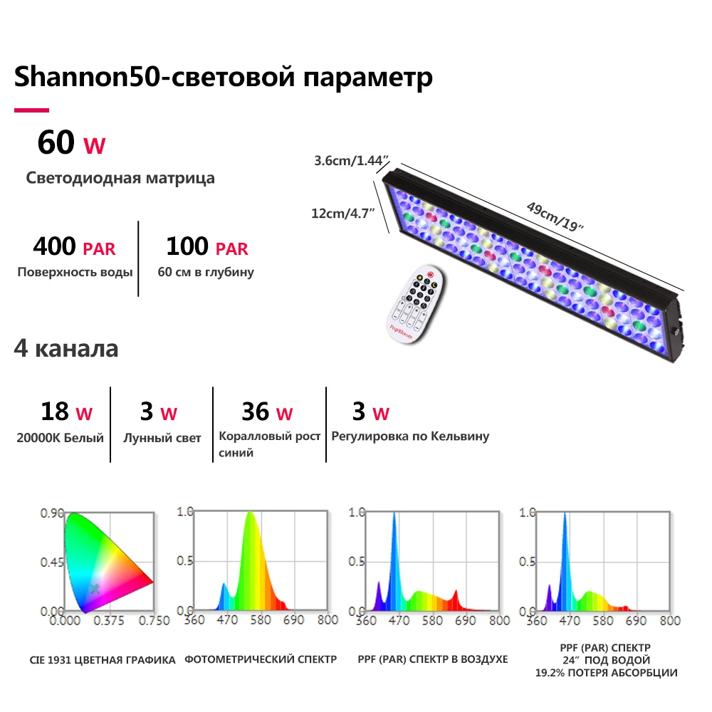 PopBloom Shannon50 Светодиодная лампа для морского аквариума, лампа...
