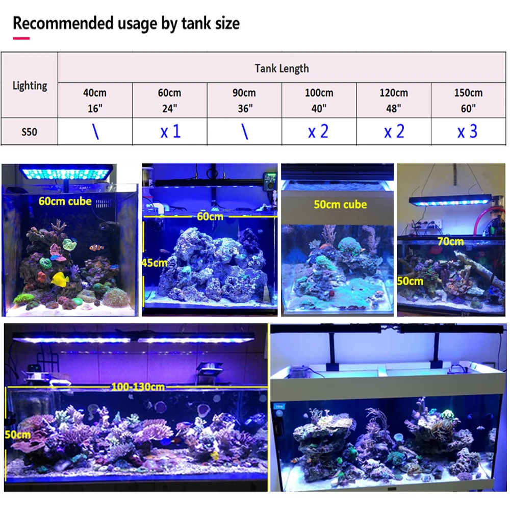 PopBloom Led Морской аквариумный светильник для 60 см 24-дюймовая л...