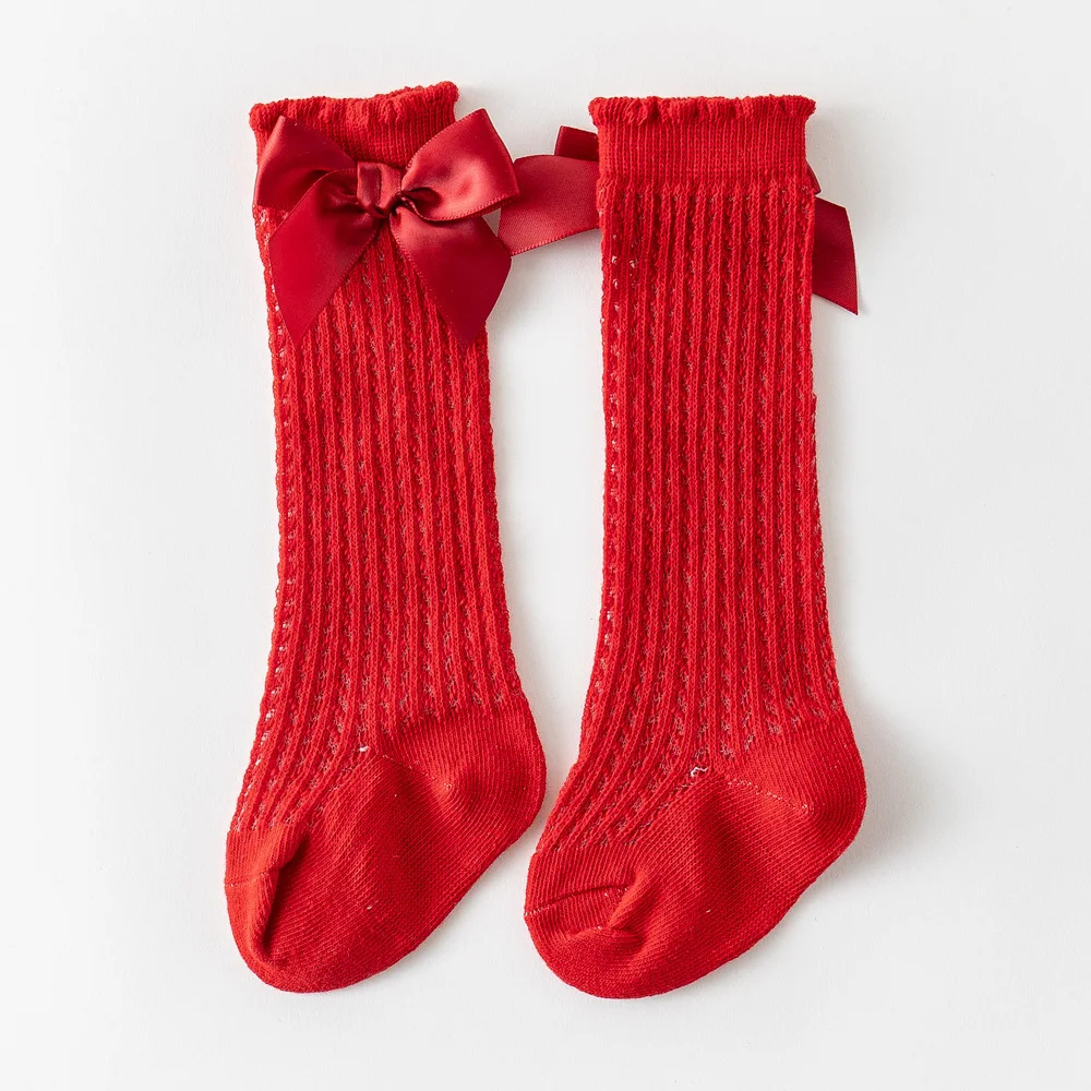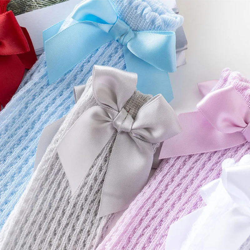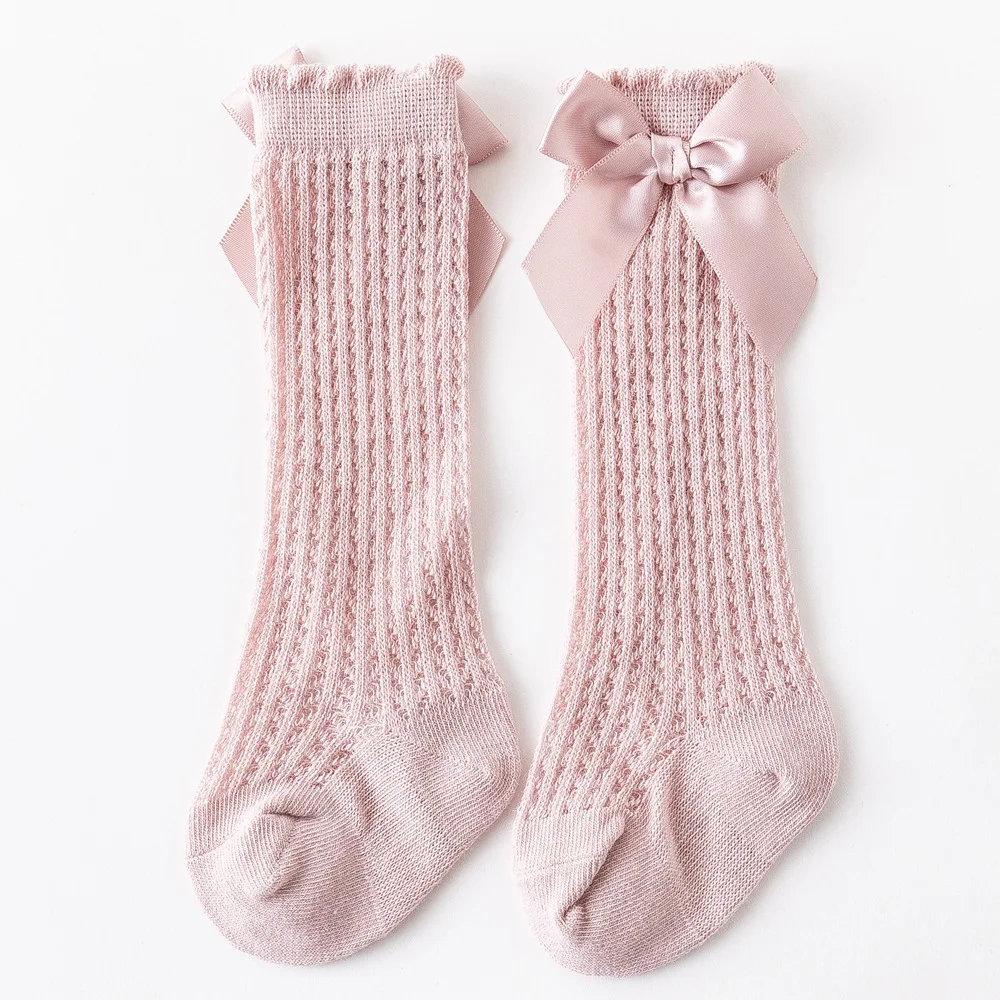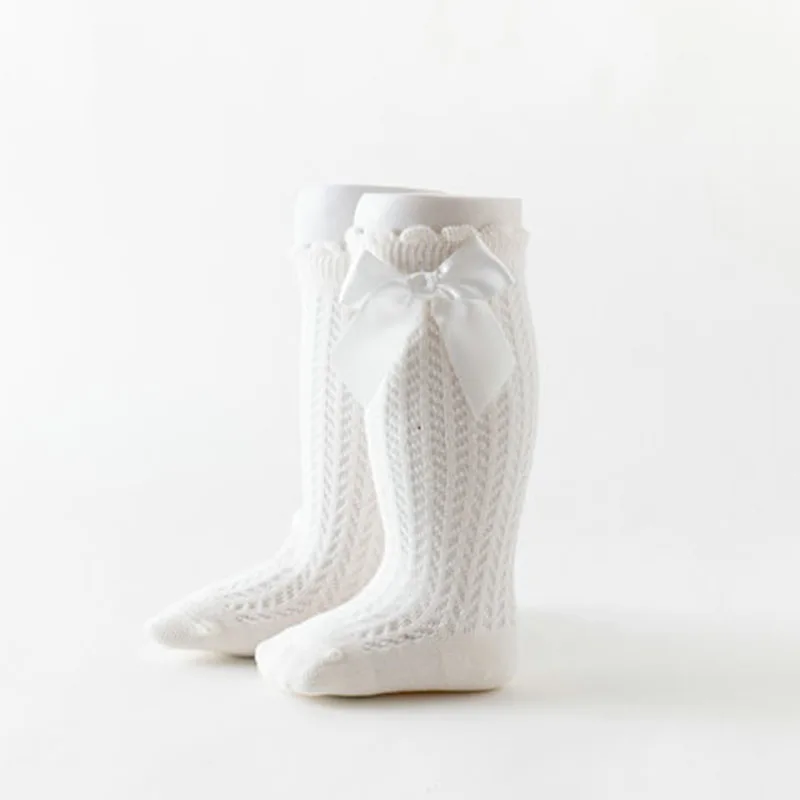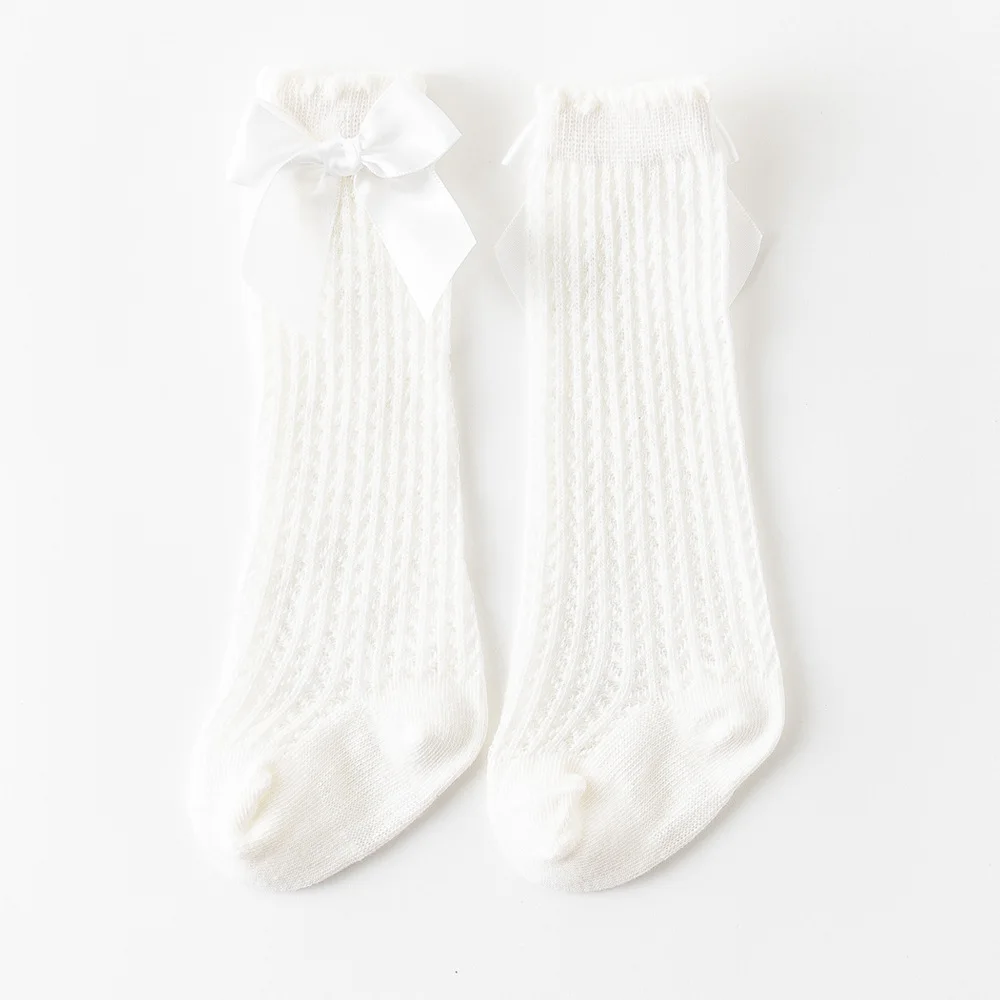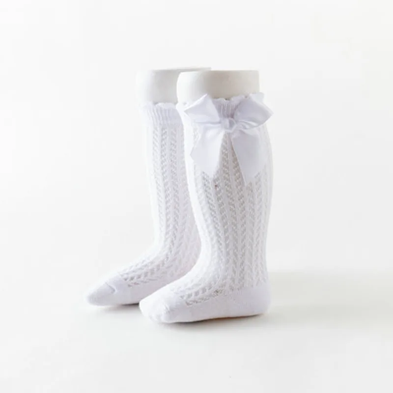 Летние носки для маленьких девочек, милые дышащие сетчатые гольфы до колена с бантом из мягкого хлопка для младенцев, малышей