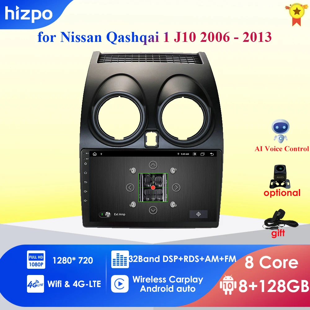 Автомагнитола 8 + 128 с голосовым ИИ-интерфейсом, Android, мультимедийный плеер для Nissan Qashqai J10 2006 - 2013 Carplay, 4G, 2din, GPS, Авторадио, GPS-навигация