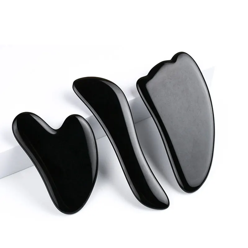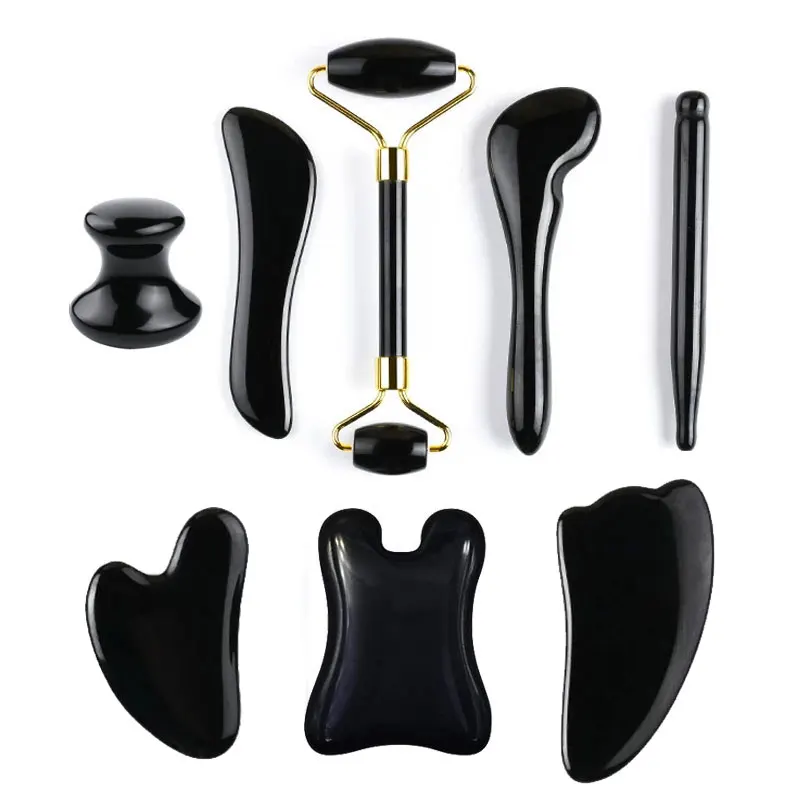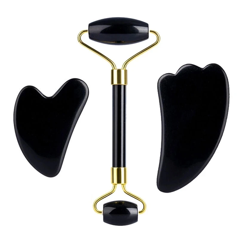 Натуральный камень гуаша массаж гуашь скребок для лица нефритовый ролик-массажер набор черный обсидиан Gua Sha доска уход за кожей лица инструмент