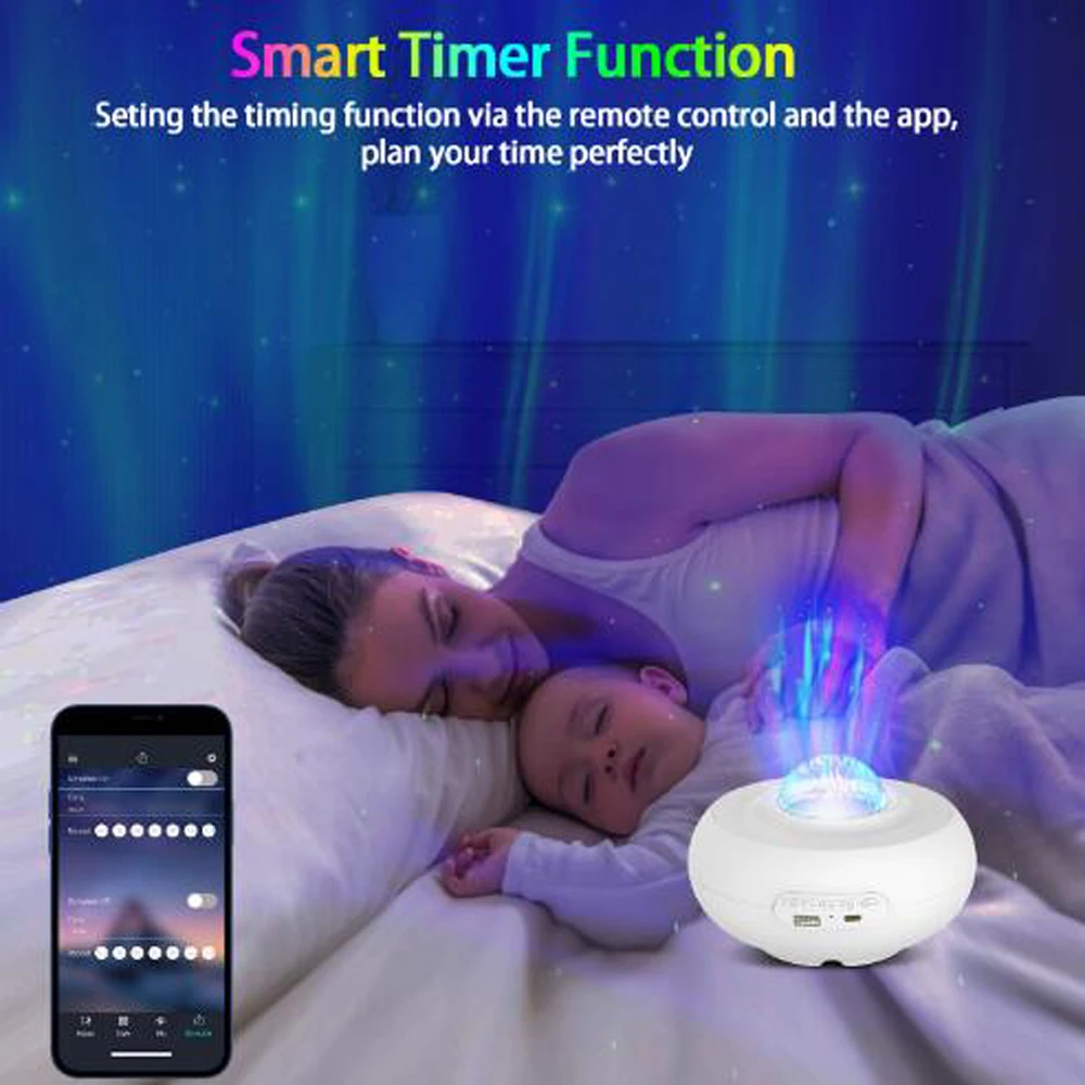 * Автоматический таймер управления: динамическая лампа для проекции туманности звезды имеет встроенный 1 ч, 2 ч таймер автоматического отключения, а ночник-светильник автоматически выключается после заданного времени. Конечно, вы можете отменить таймер, чтобы сохранить его всю ночь.