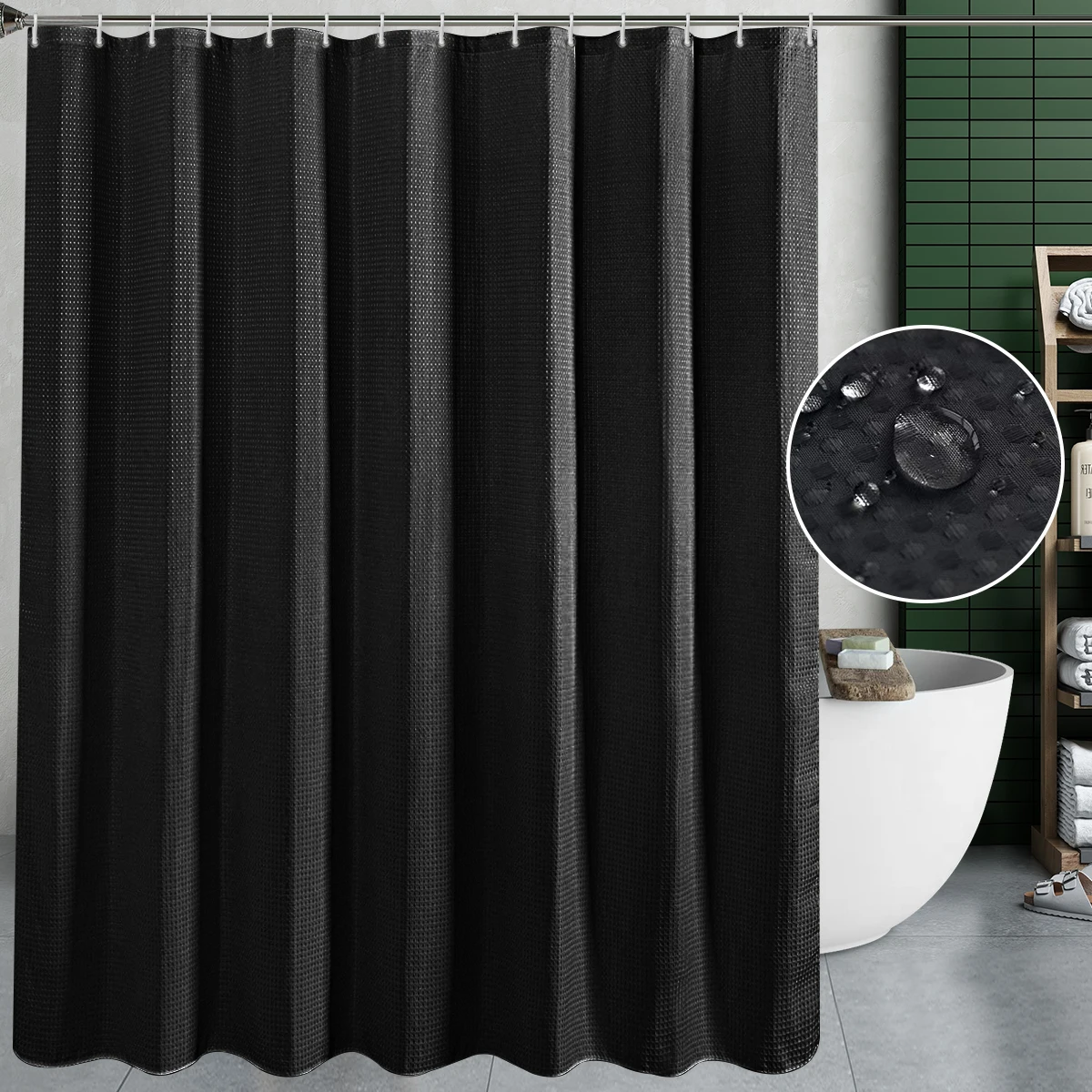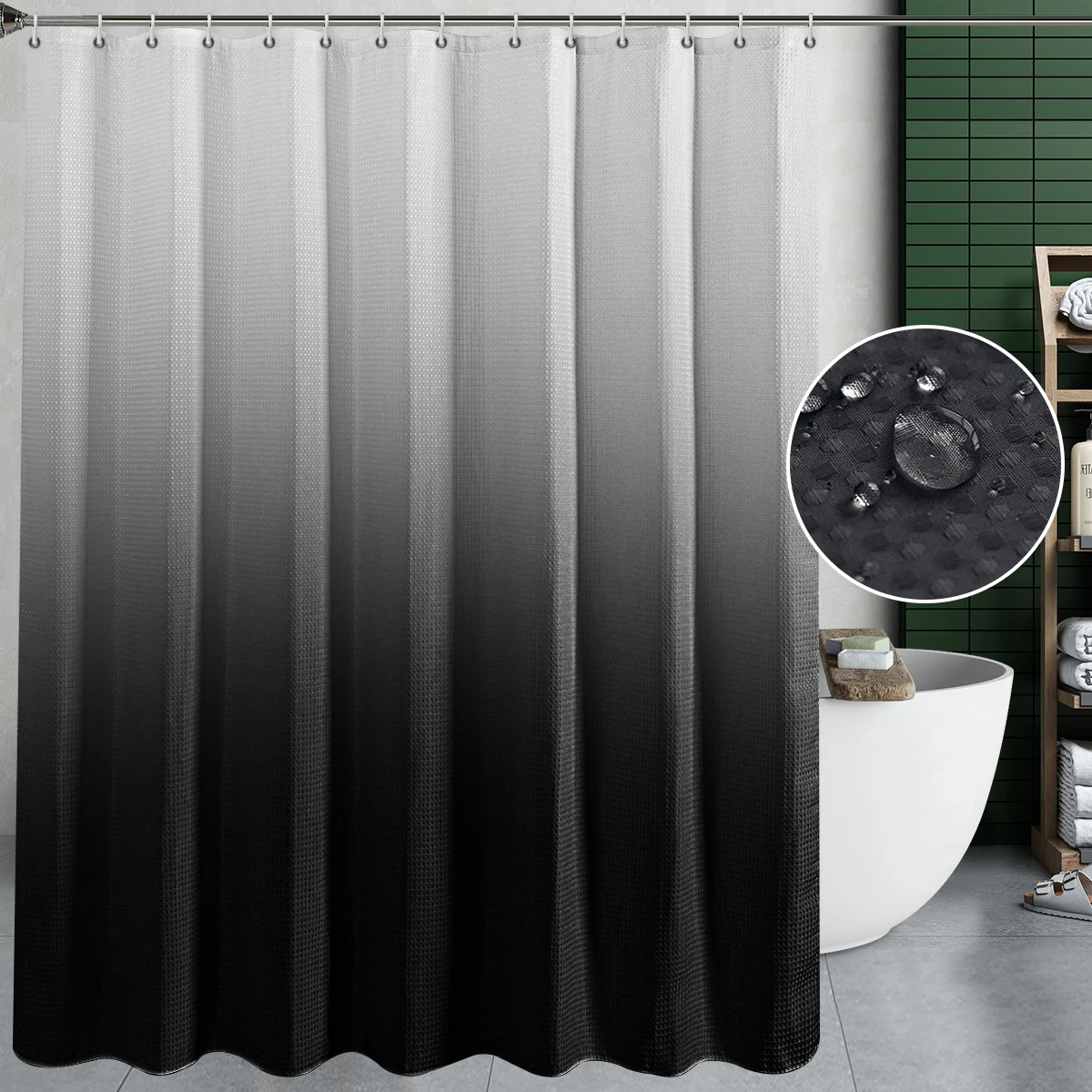 Однотонная Длинная черная душевая занавеска s-образная подкладка для кровати ванной и над ней Водонепроницаемая душевая шторка градиентная рампа искусственная занавеска с крючками
