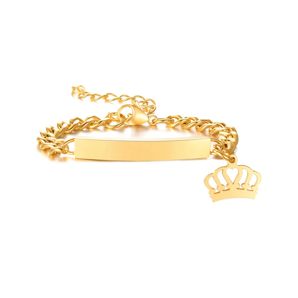 Персонализированный браслет с именем ребенка, Браслет-панцирная цепочка из нержавеющей стали с короной, подарок для новорожденных девочек и мальчиков, не вызывает аллергию