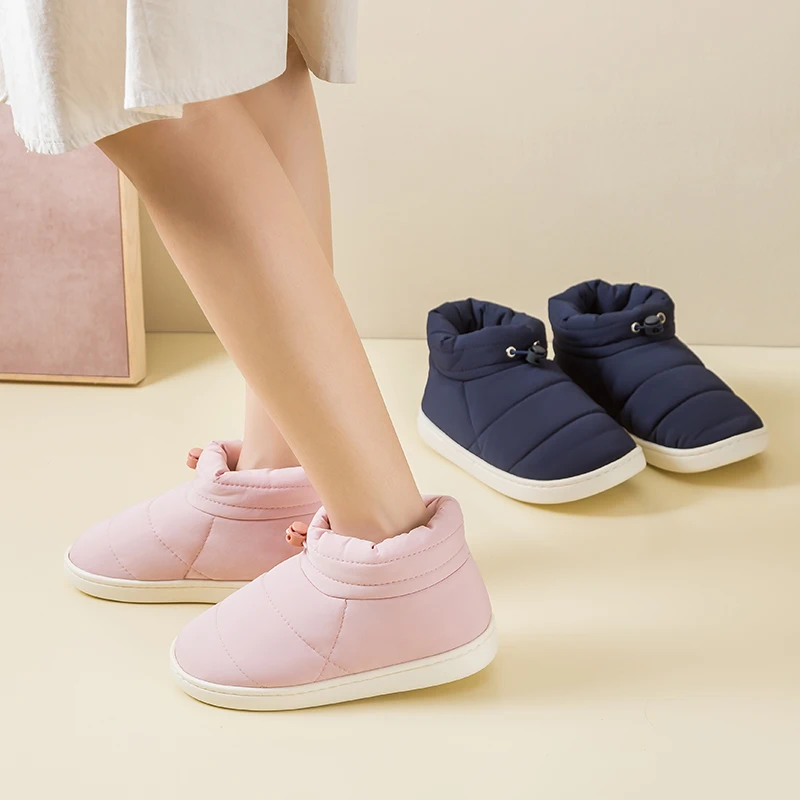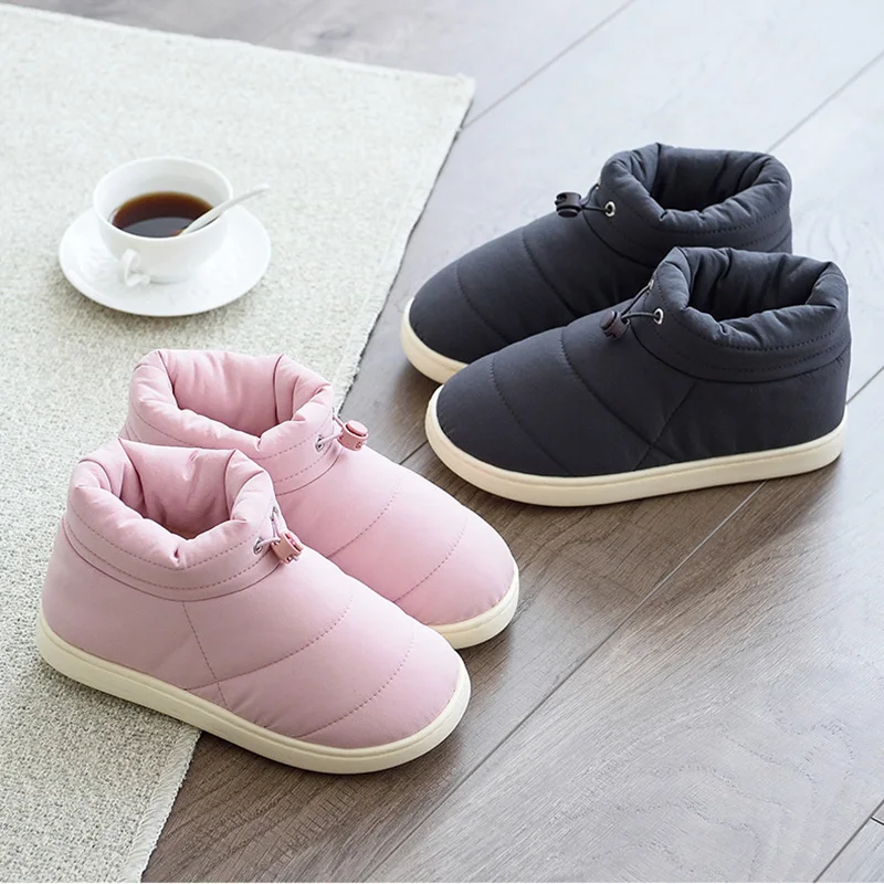 Зимние женские тапочки, ботильоны для снега, домашняя хлопковая обувь, Нескользящие мягкие теплые домашние плюшевые тапочки для пар