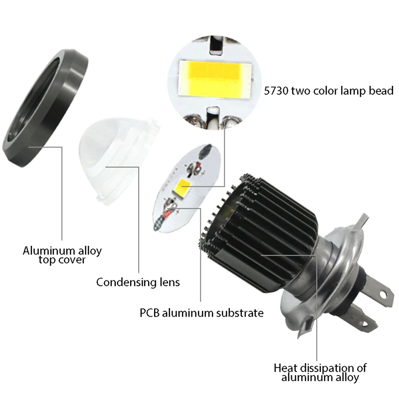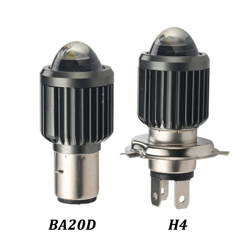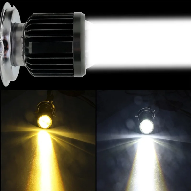 Светодиодные мотоциклетсветодиодный лампы H4 BA20D, фары дальнего света, светодиодная фара, маленькая стальная пушка, Точечный светильник 6000K, белый + желтый свет с линзой