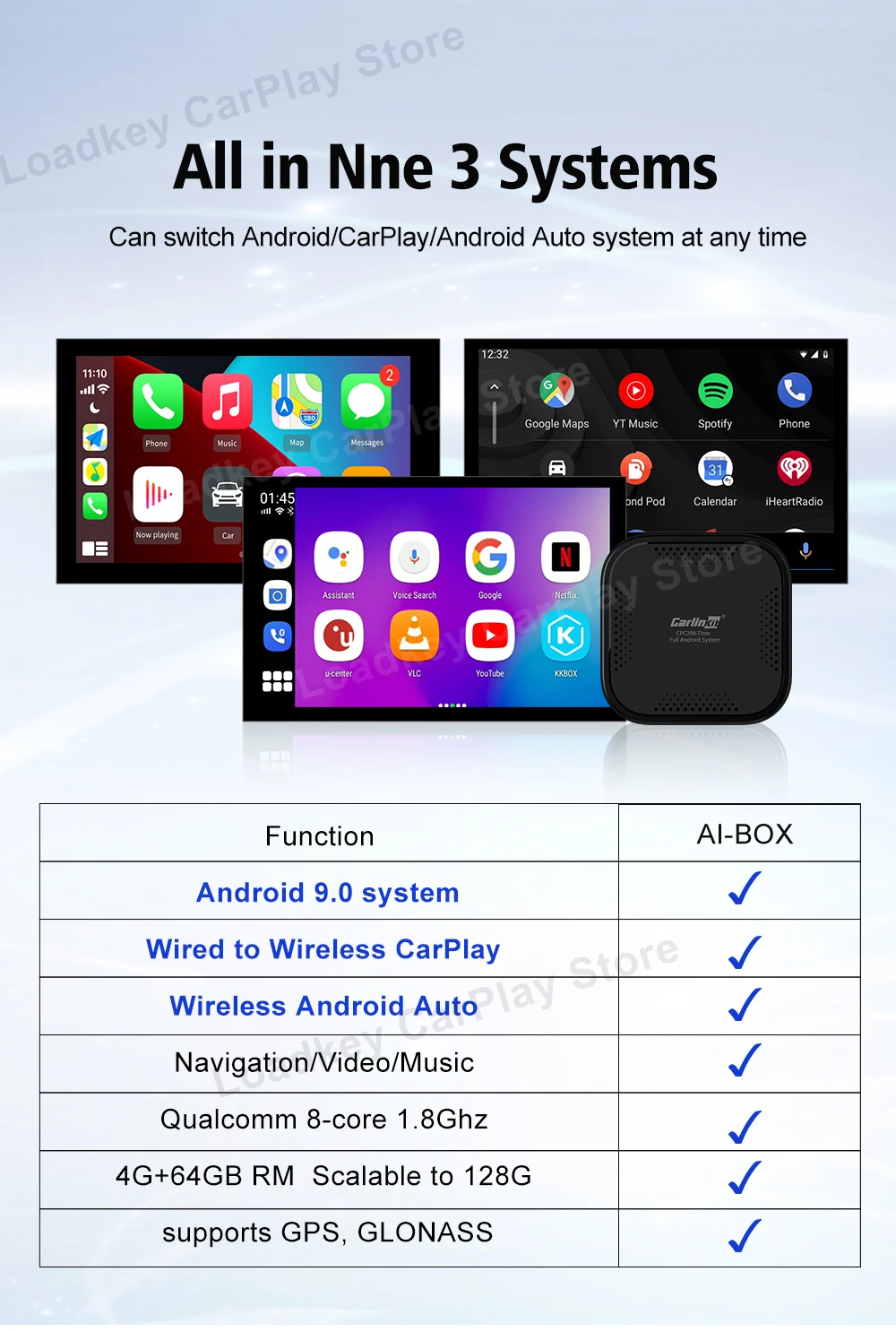 Carlinkit 3 CarPlay Ai Box беспроводной Apple CarPlay беспроводной Android авто для Audi Bmw Mazda Toyota Netflix TV 4G LTE 128G TF GPS
