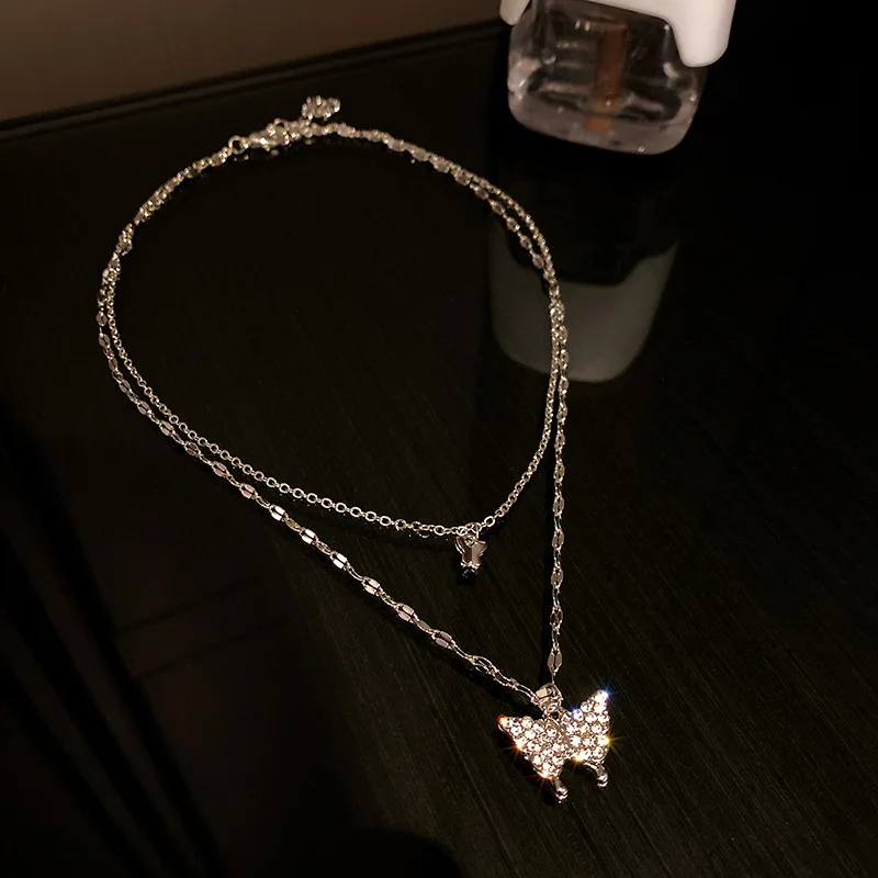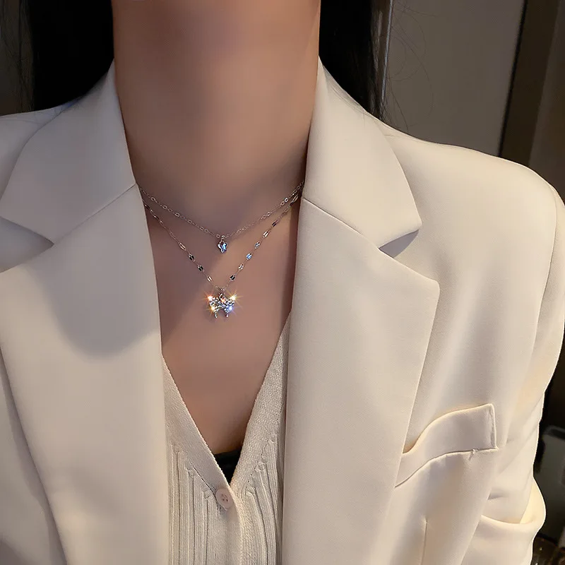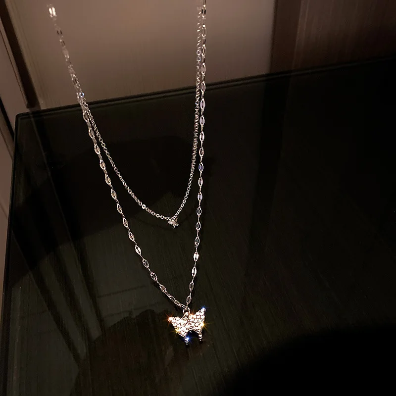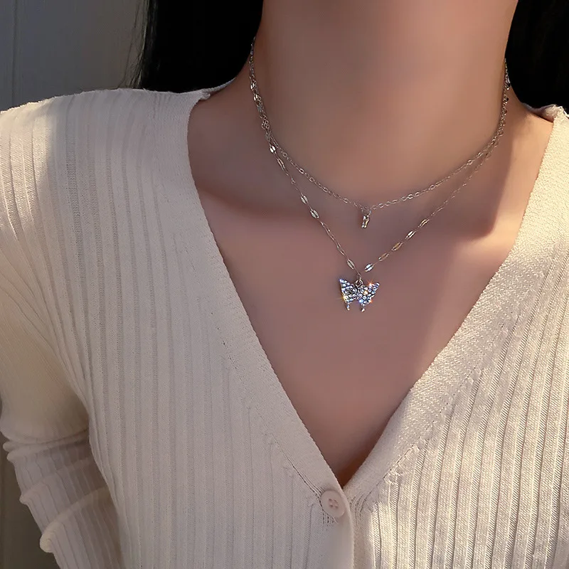 Женское Двухслойное ожерелье с подвеской-бабочкой, на цепочке до ключиц