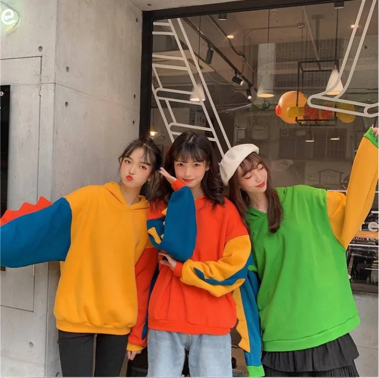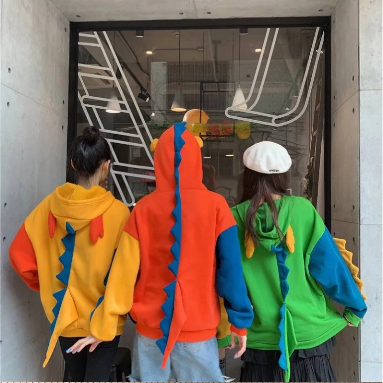 Женская толстовка с капюшоном и принтом динозавра, в Корейском стиле