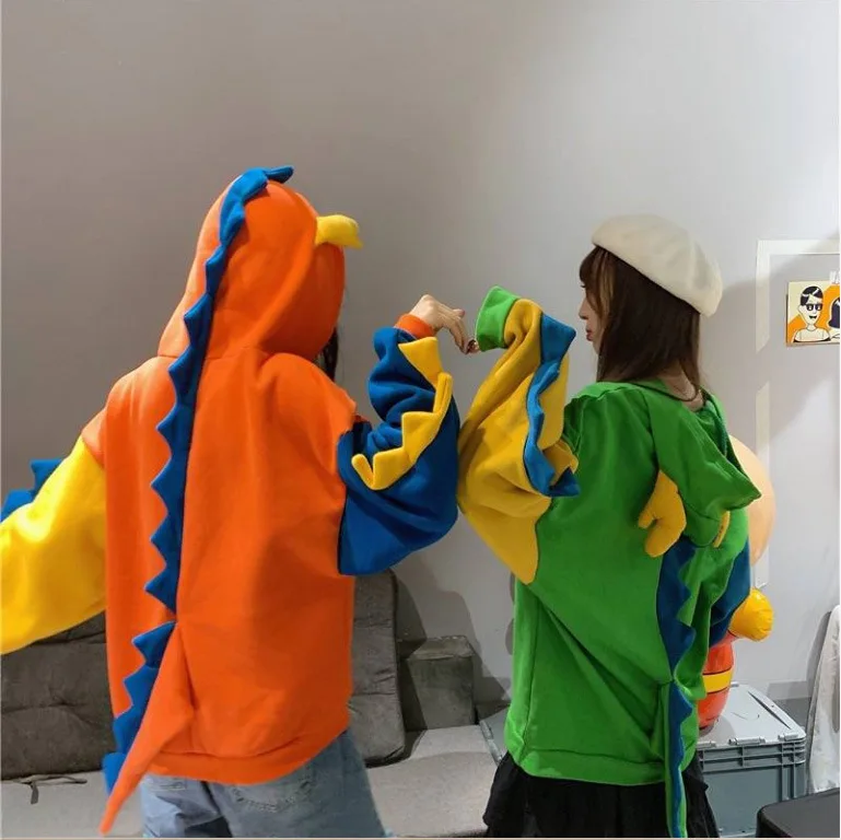 Толстовка Женская с динозавром, Модный свитшот в стиле оверсайз, утепленная кофта в Корейском стиле, повседневный зимний худи с динозавром