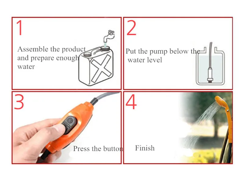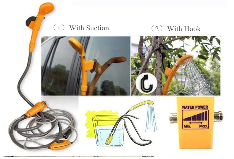 Особенности:Переключатель Вкл/Выкл-регулируемое давление водыС крючком, присоской и сумкой для храненияКоличество воды в душе регулируется регулируемым ключомЛегко использовать, можно использовать вместе с резервуаром для водыОтлично подходит для чистки вашего автомобиля, собаки, уличной обуви и принятия душаИдеально подходит для использования во время кемпинга-пеших прогулок-пляжа-дома на колесах-Караван-лодки и других видов деятельности в помещении или на открытом воздухе