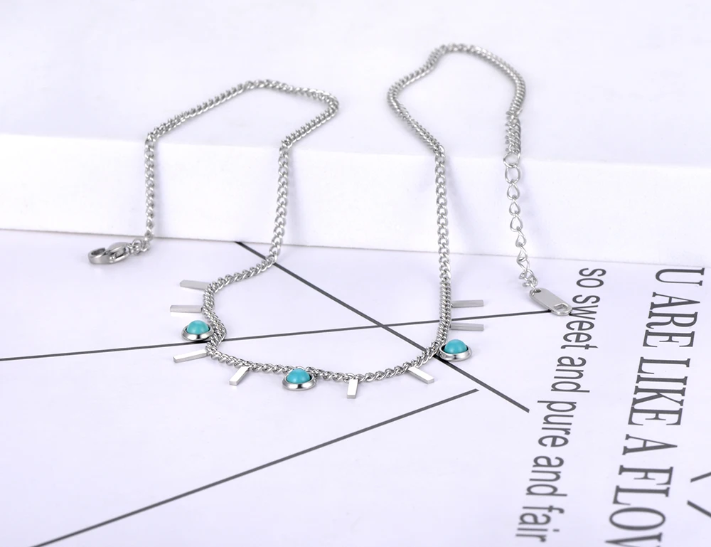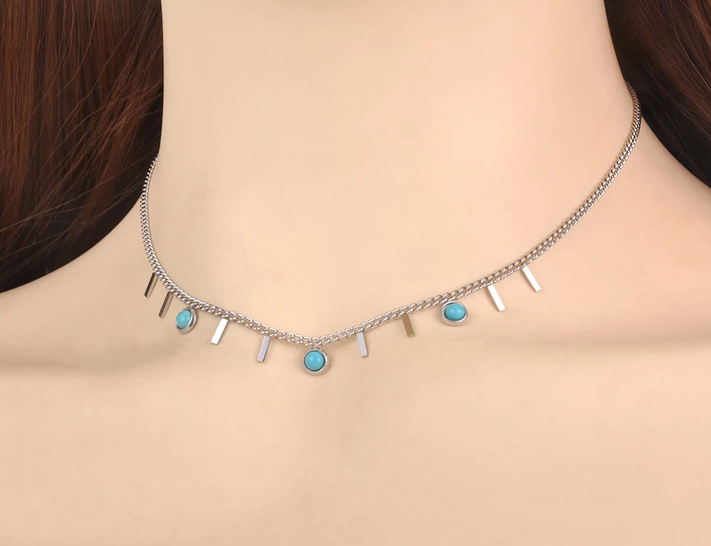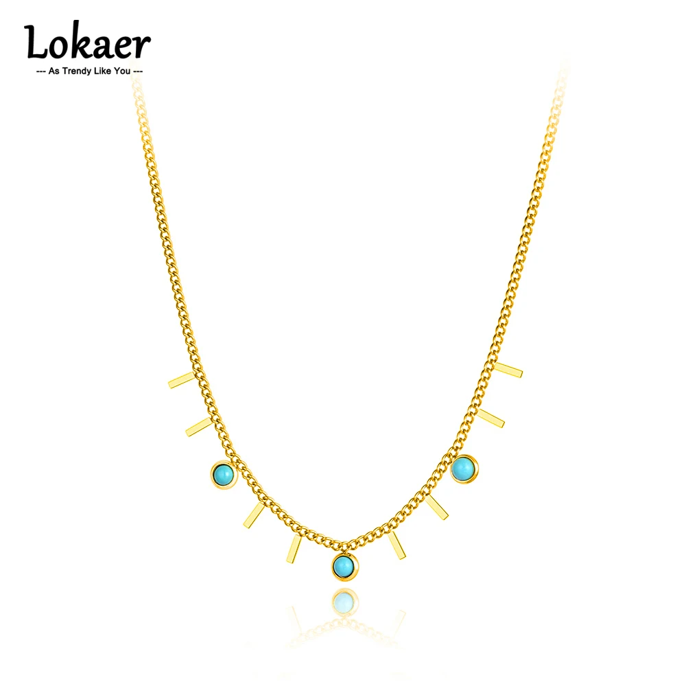 Женское Ожерелье-чокер Lokaer, цепочка из нержавеющей стали с подвеской из бирюзы цвета 18-каратного золота в богемном стиле, N21229