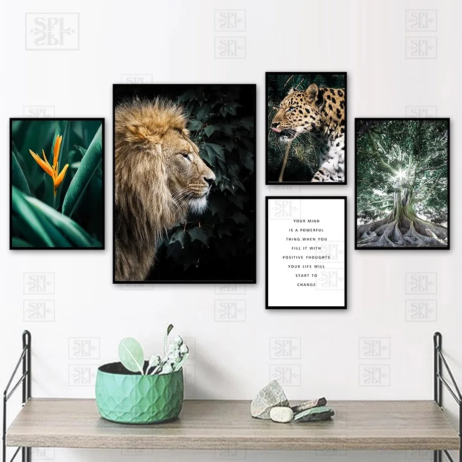 Джунгли Гепард Лев Monstera лист Дерево настенная живопись холст скандинавские постеры и принты настенные картинки для декора гостиной