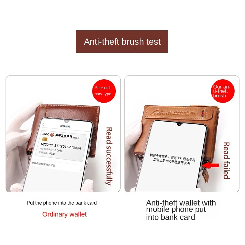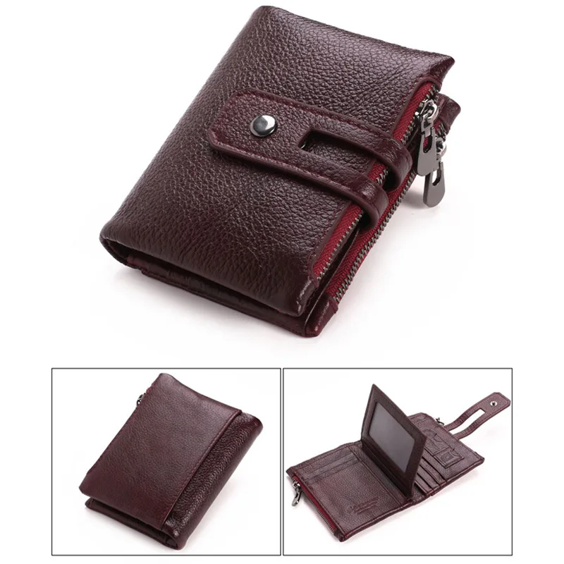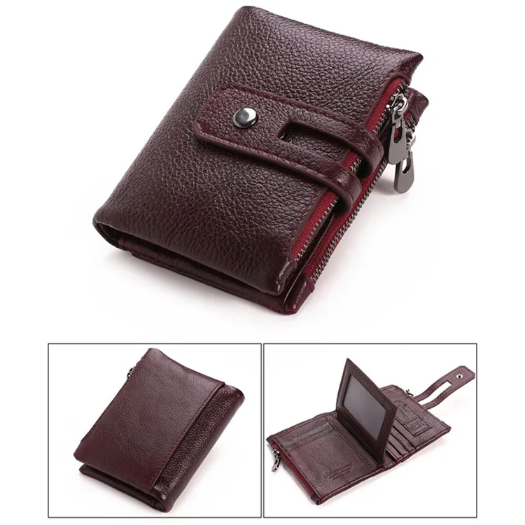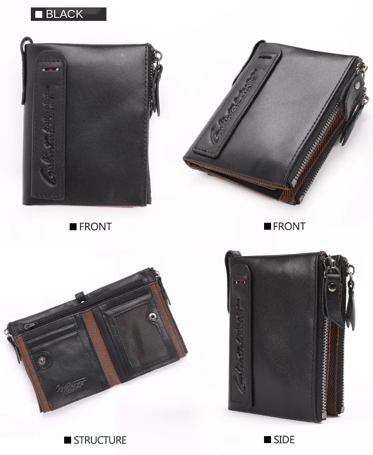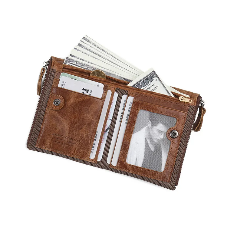 Кожаный мужской кошелек для мелочи IKE MARTI, маленький бумажник с RFID-защитой, с двойной молнией в стиле ретро