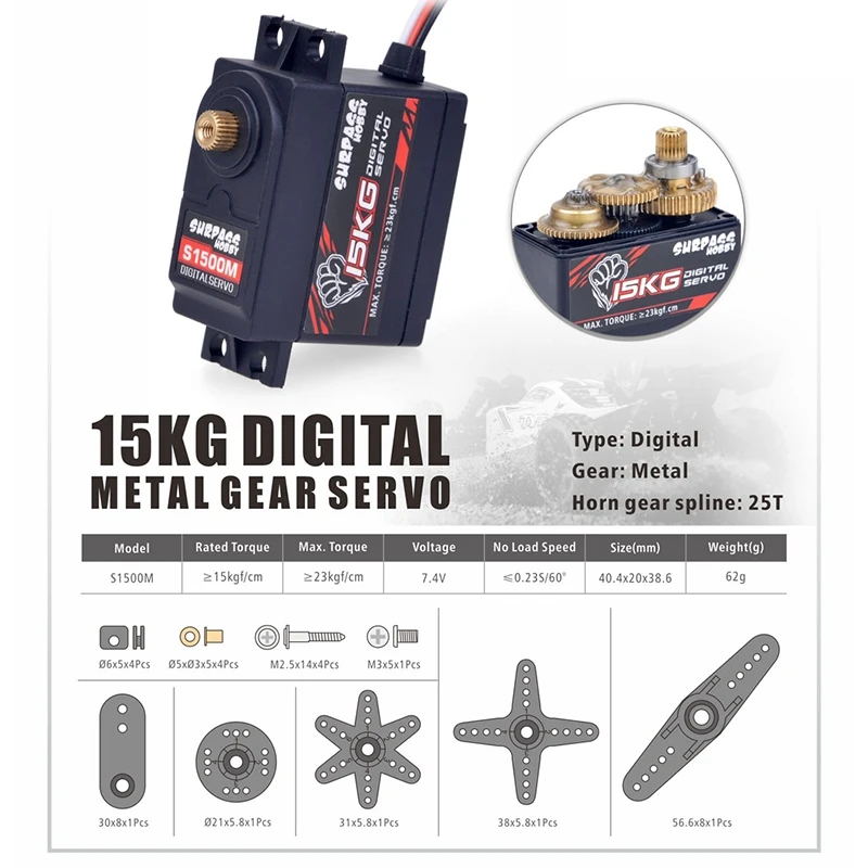 Цифровой сервопривод с металлической шестерней SURPASS HOBBY S1500M 15 кг для высокоскоростных радиоуправляемых автомобилейсамолетовдроновлодок 110 18