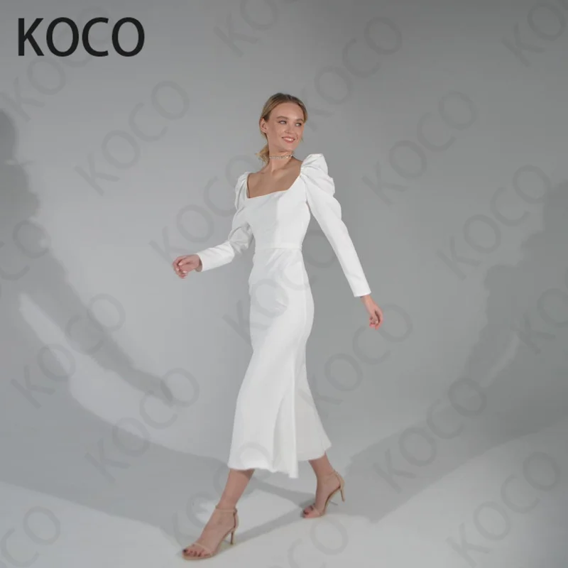 Простые, короткие, атласные, пляжные вечерние платья невесты, элегантные, квадратный воротник, Vestido De Novia Civil, Женская юбка