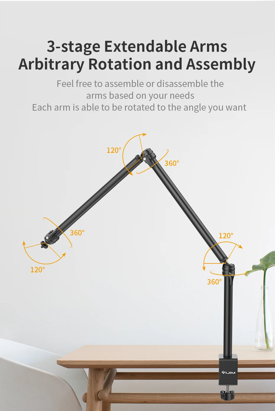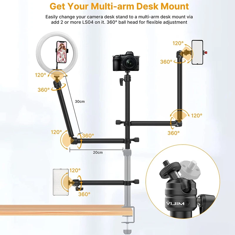 VIJIM LS04 стрела трубный зажим двухступенчатый Удлинительный кронштейн, монтируемый в стол светильник подставка с 14 для микрофона DSLR камера видео светильник s