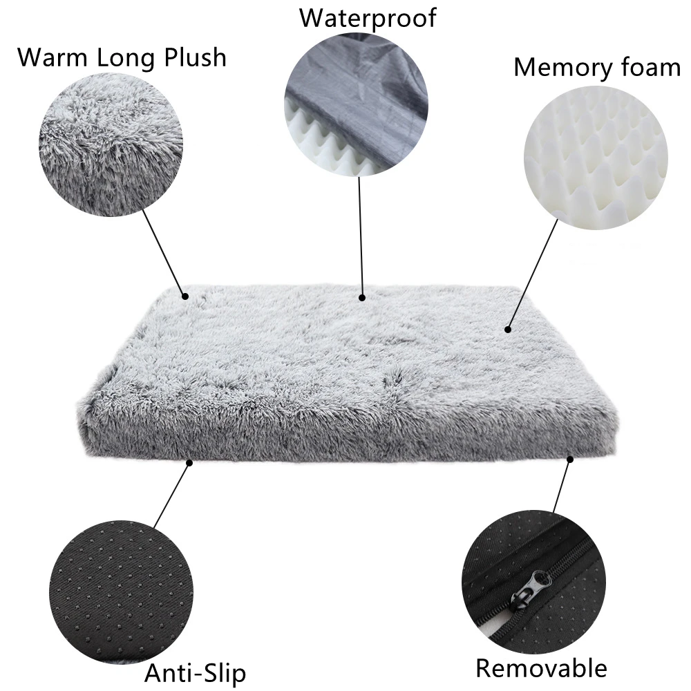Роскошный плюшевый матрас для домашних животных, длинная теплая кровать из пены с эффектом памяти, диванная подушка для маленьких и больших питомцев, коврики для кошек, собачьи аксессуары