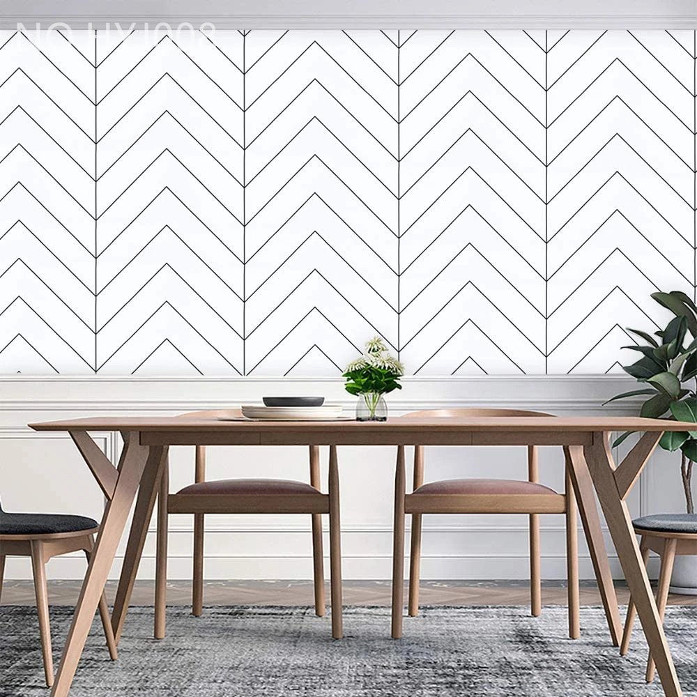 Самоклеящиеся обои, рулон черно-белых геометрических линий, для фона гостиной, спальни, мебели, домашний декор