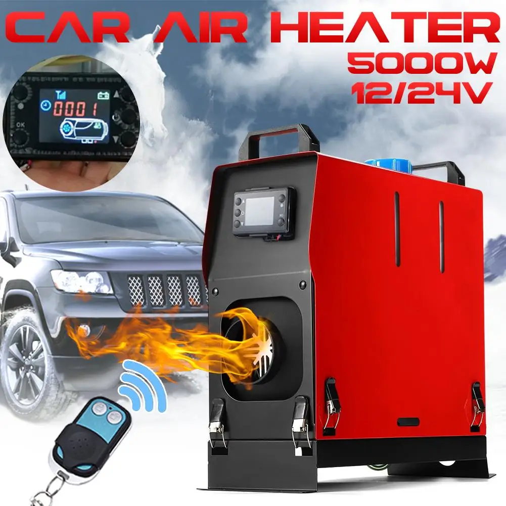 Все в одном, воздушный дизельный стояночный обогреватель для грузовиков, автодомов, лодок, автобусов, 12 В24 В, 5 кВт, ЖК-переключатель, пульт дистанционного управления
