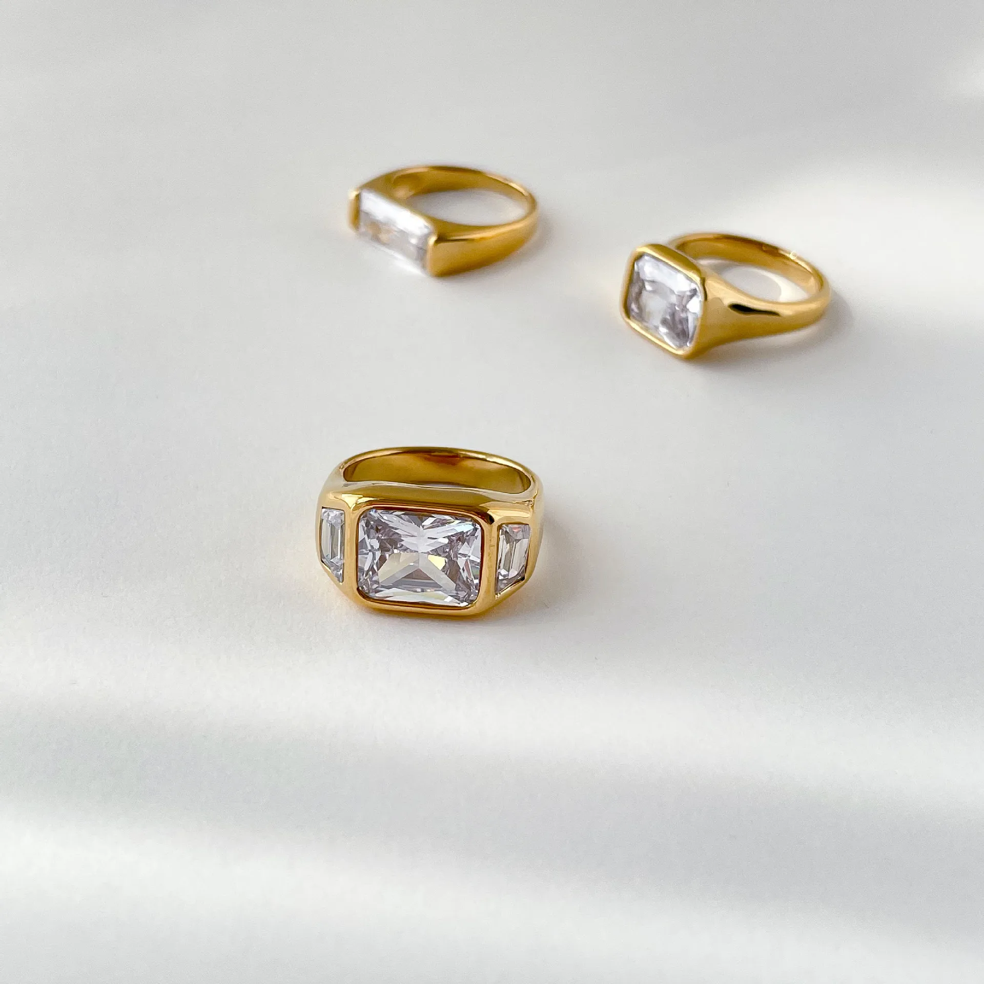 Золотые кольца без блеска с большим камнем из циркония, металлические кольца в стиле хип-хоп для женщин и мужчин, Модные Свадебные обручальные украшения