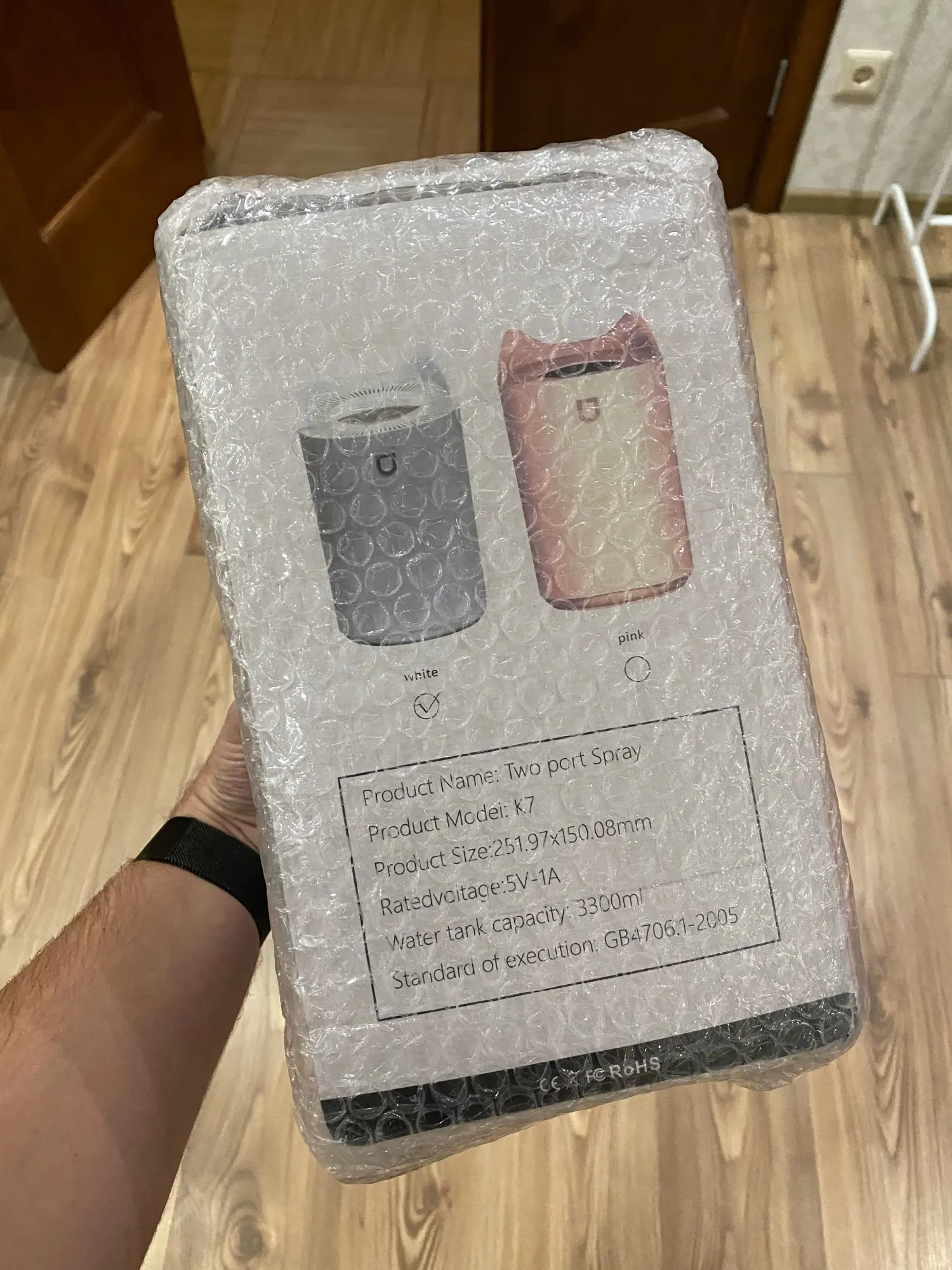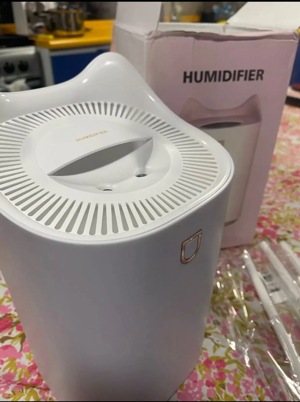 Всё работает, коробка конечно убитая, сам целый, такой увлажнитель будет очень долго увлажнять любую квадратуру... размер маленький и распыляет слабо.